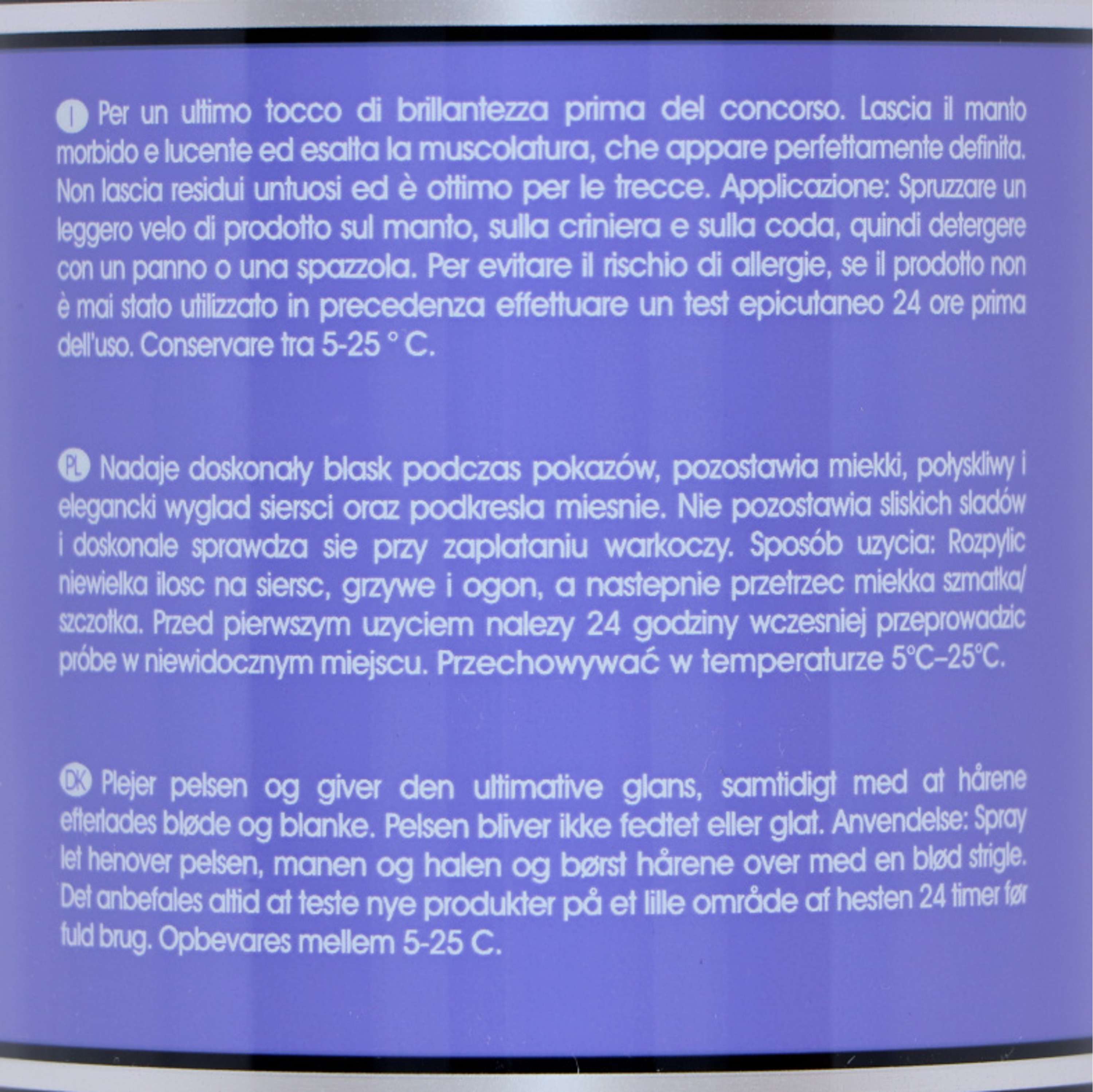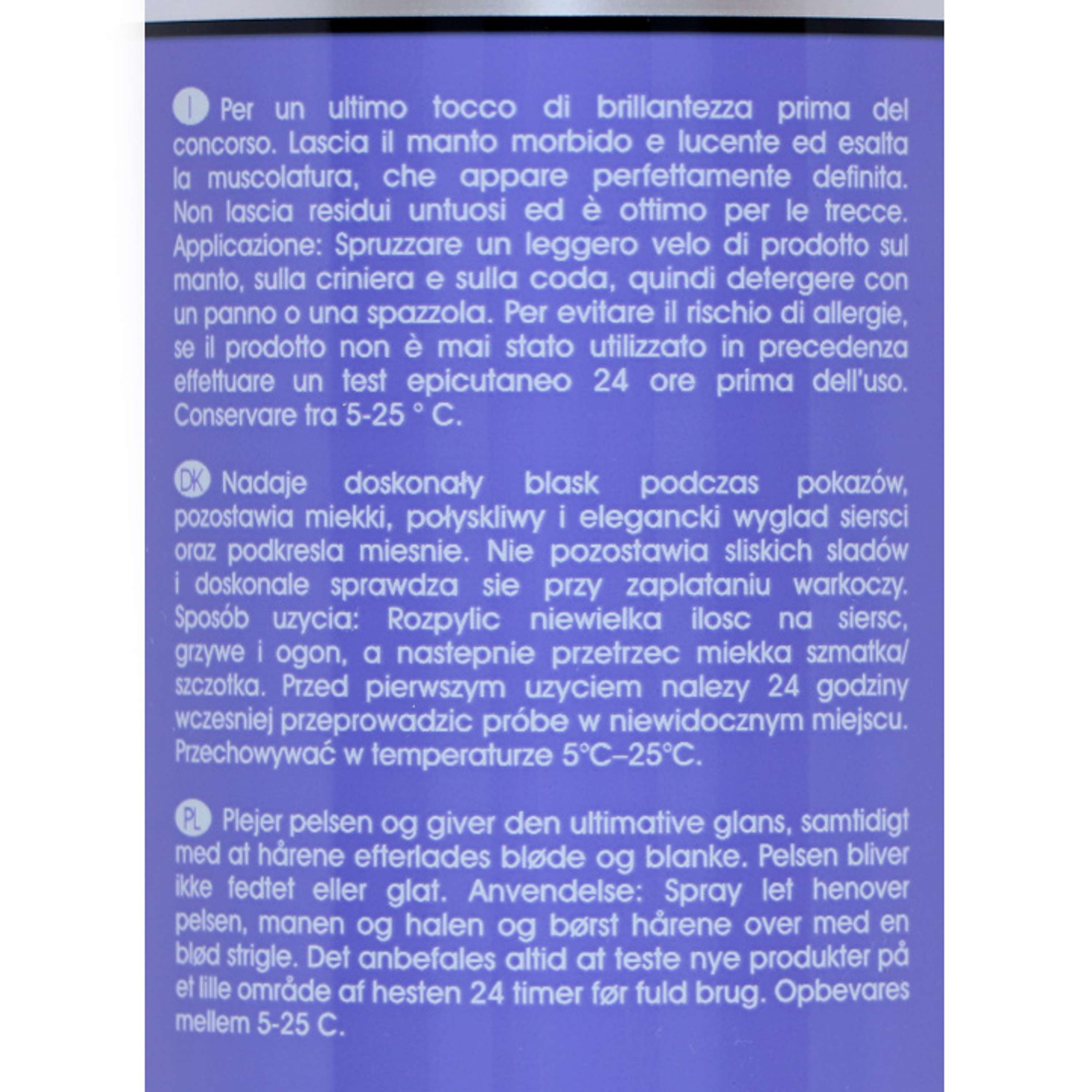 Una spruzzata basta per trasformare criniera e coda. Questo spray lascia un effetto lucido e setoso che non solo attira gli sguardi, ma rende il mantello di una morbidezza irresistibile.