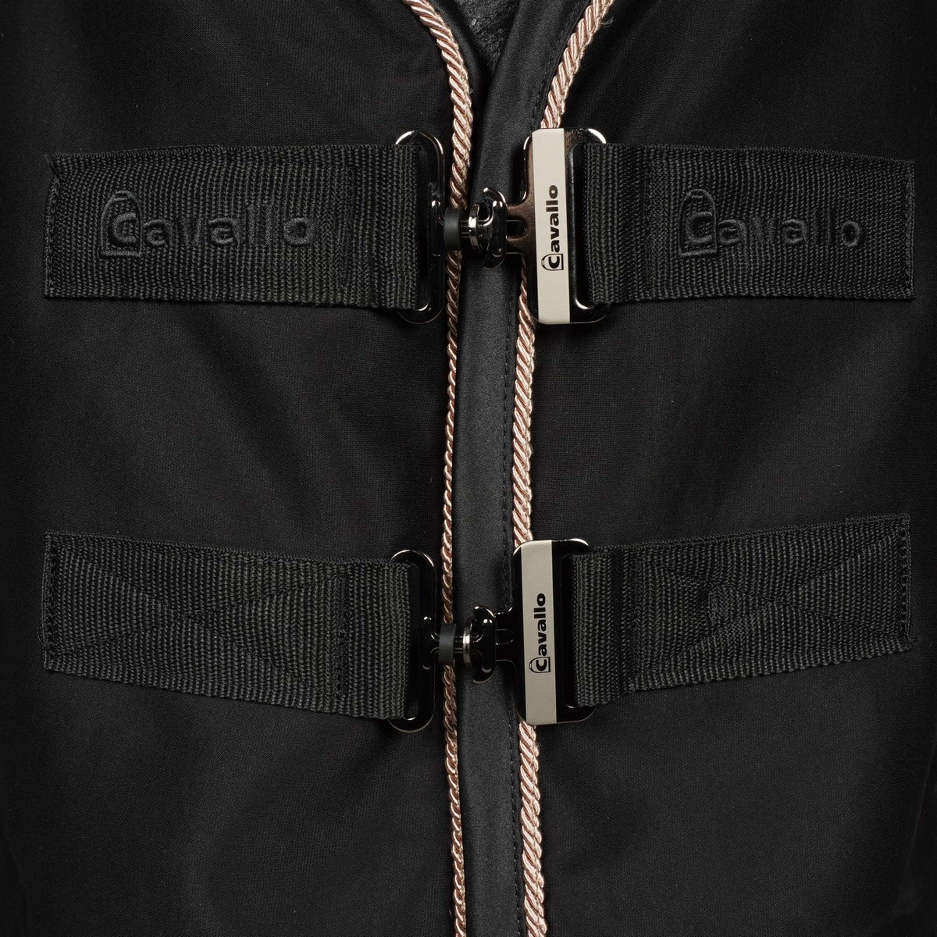 Realizzata in materiale traspirante e ad asciugatura rapida, questa coperta aiuta a mantenere il cavallo asciutto e confortevole. Sul garrese e sulla parte posteriore è ricamato con cura il logo Cavallo. Due ganci girevoli con logo Cavallo in bronzo e argento garantiscono una chiusura sicura e stabile.