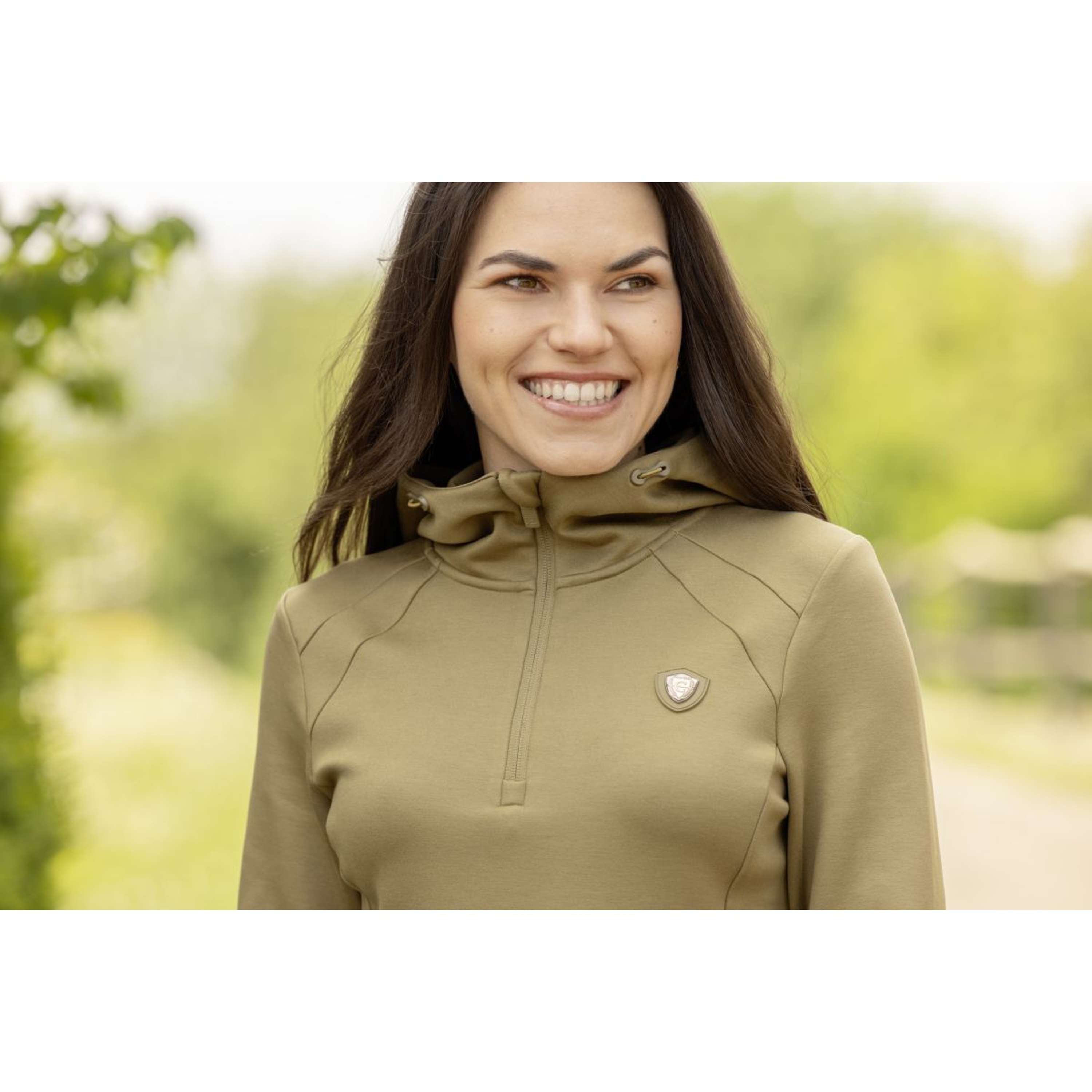 Questa felpa con cappuccio unisce funzionalità sportiva e stile femminile. Il taglio aderente, il tessuto super leggero e traspirante e la pratica mezza zip la rendono l'accessorio ideale per qualsiasi attività: pratica ed elegante allo stesso tempo! Il cappuccio può essere chiuso con bottoni a pressione, il tessuto elasticizzato in quattro direzioni, il taglio aderente e femminile e le due tasche laterali con zip. TENCEL™ è un marchio di Lenzing AG.