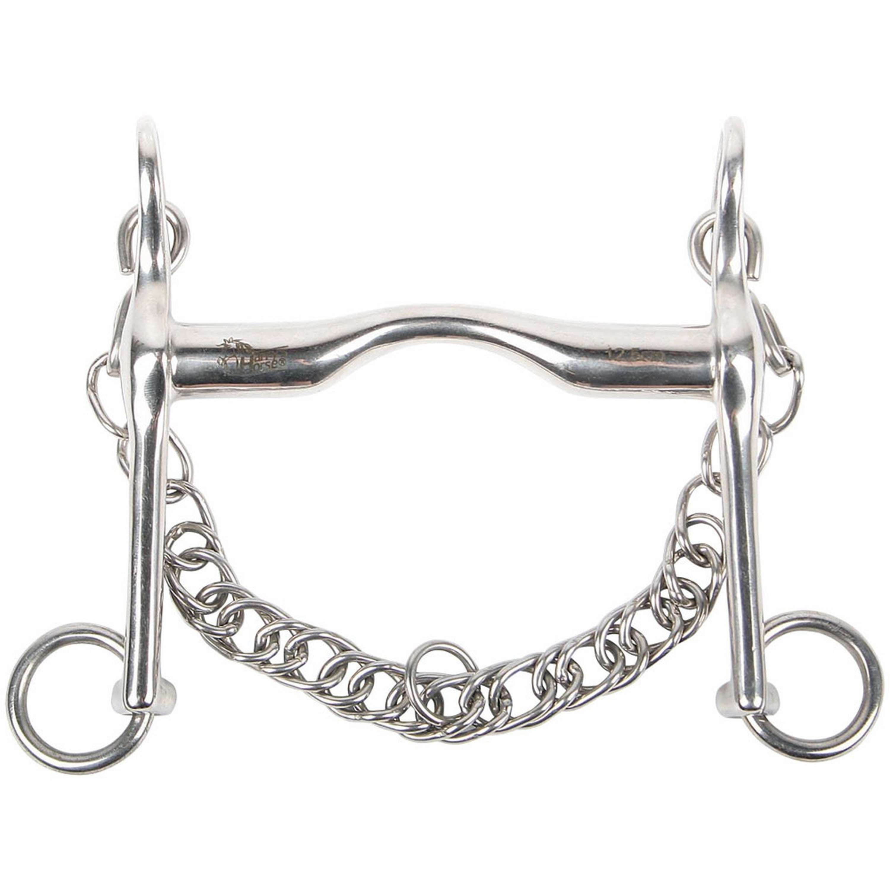 Filetto da dressage in acciaio inox con arco linguale basso per la massima libertà di movimento della lingua. Include catena di sicurezza. Spessore del bocchino: 18 mm. Lunghezza del gambo: 140 mm.