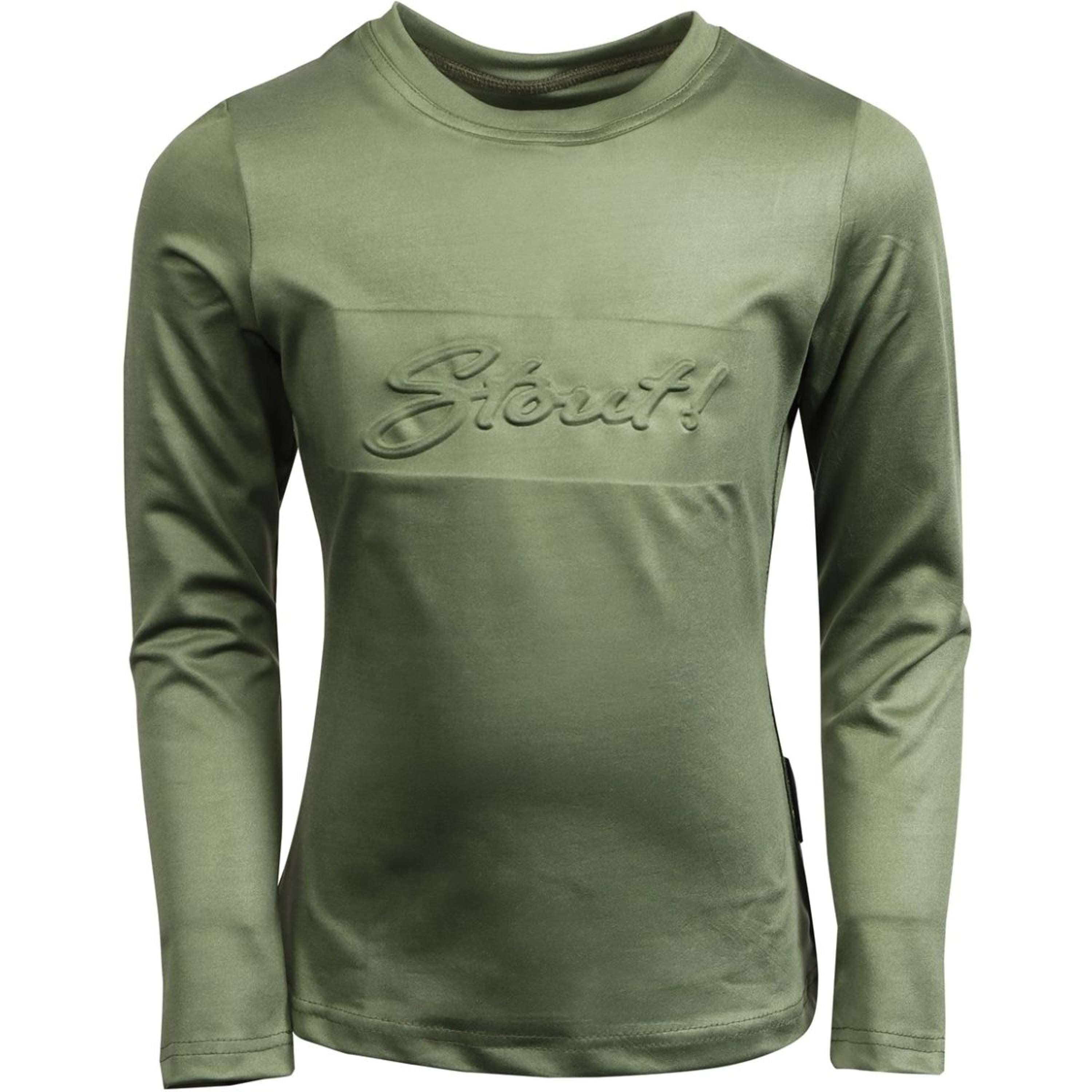 T-shirt girocollo a maniche lunghe con logo STOUT! sul petto e fascia con stampa STOUT! sul lato sinistro. Materiale: 93% micropoliestere / 7% elastan.