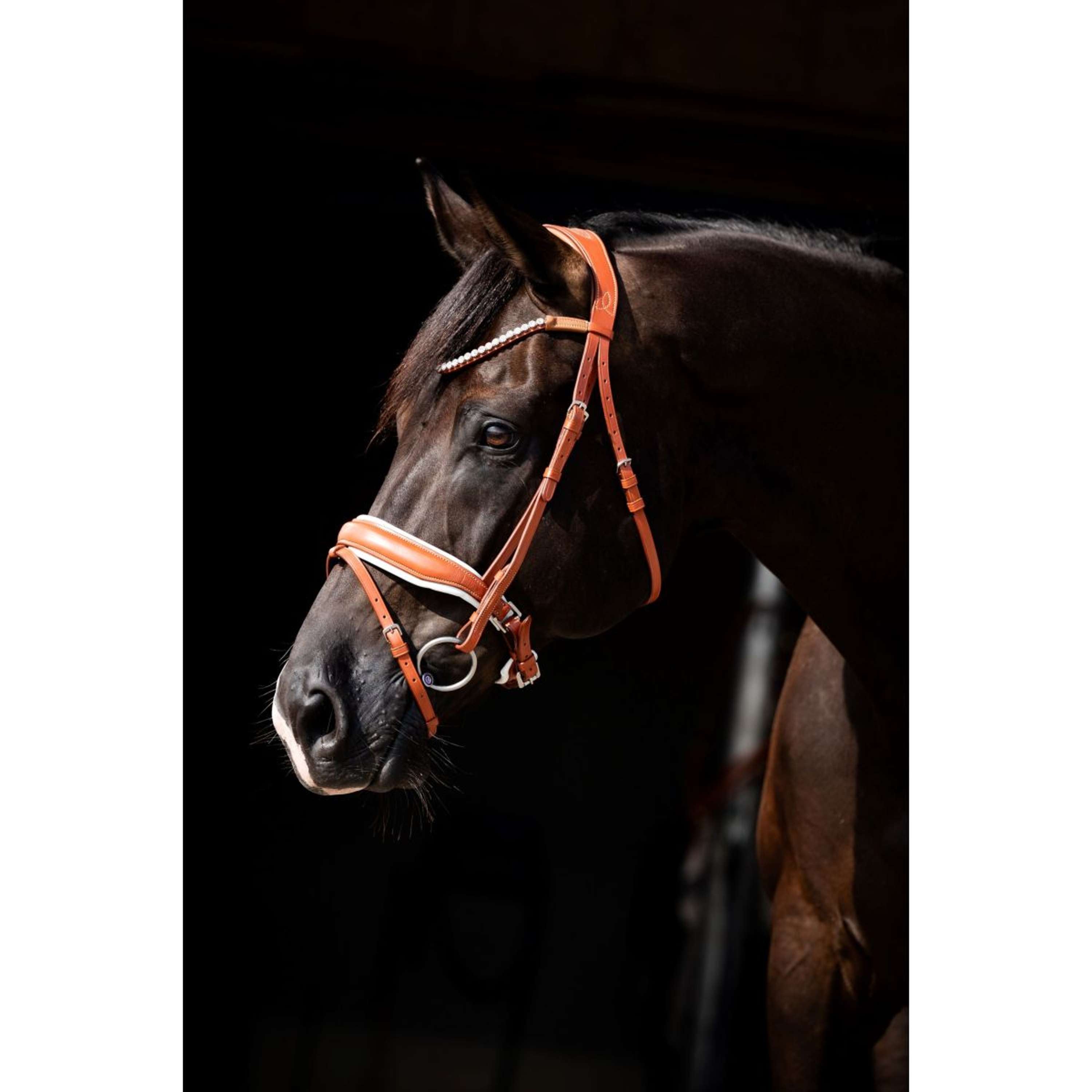 La briglia Chesnuth si distingue per il suo stile raffinato. Col suo aspetto classico ed essenziale, aggiunge un tocco di classe al tuo cavallo, senza mai risultare eccessiva.