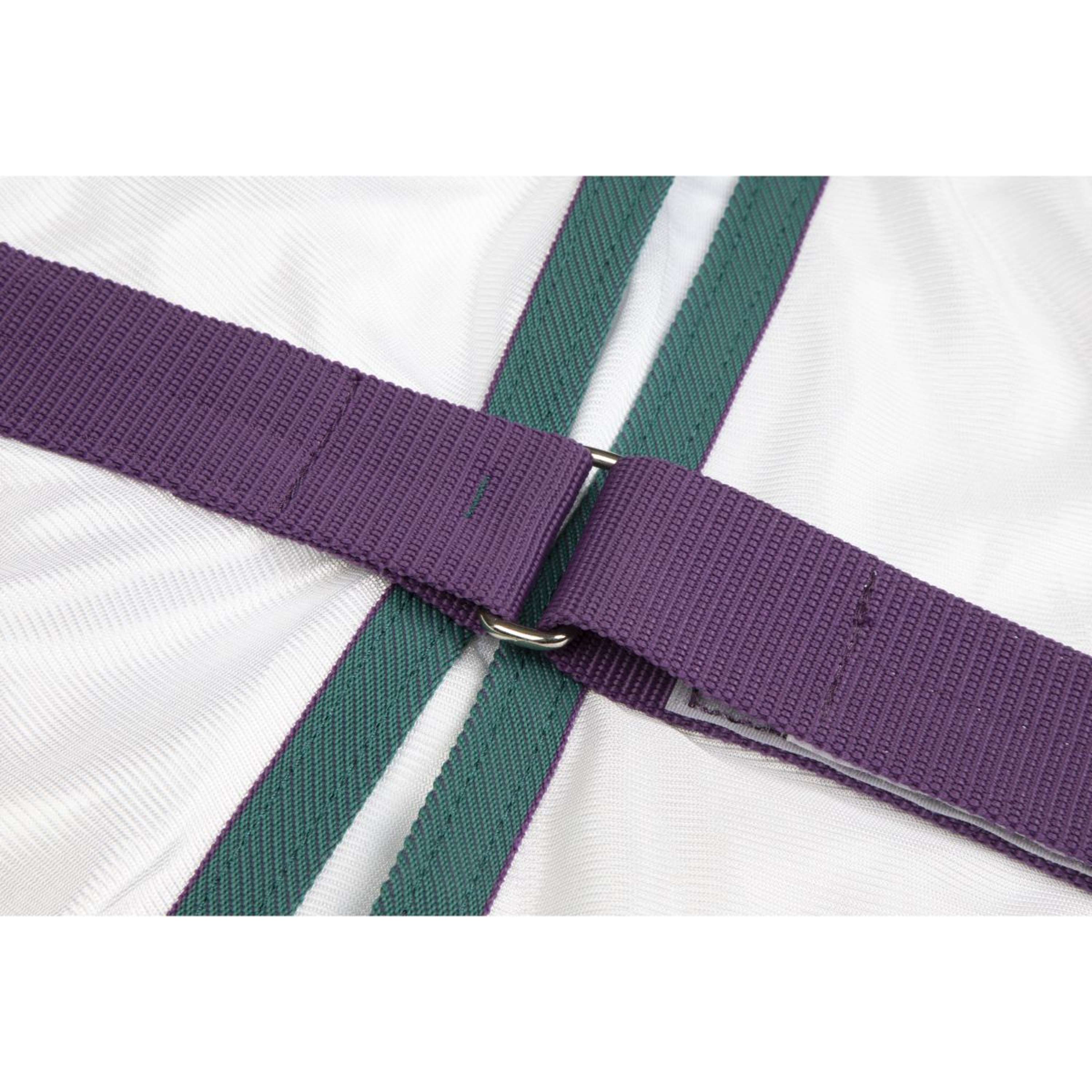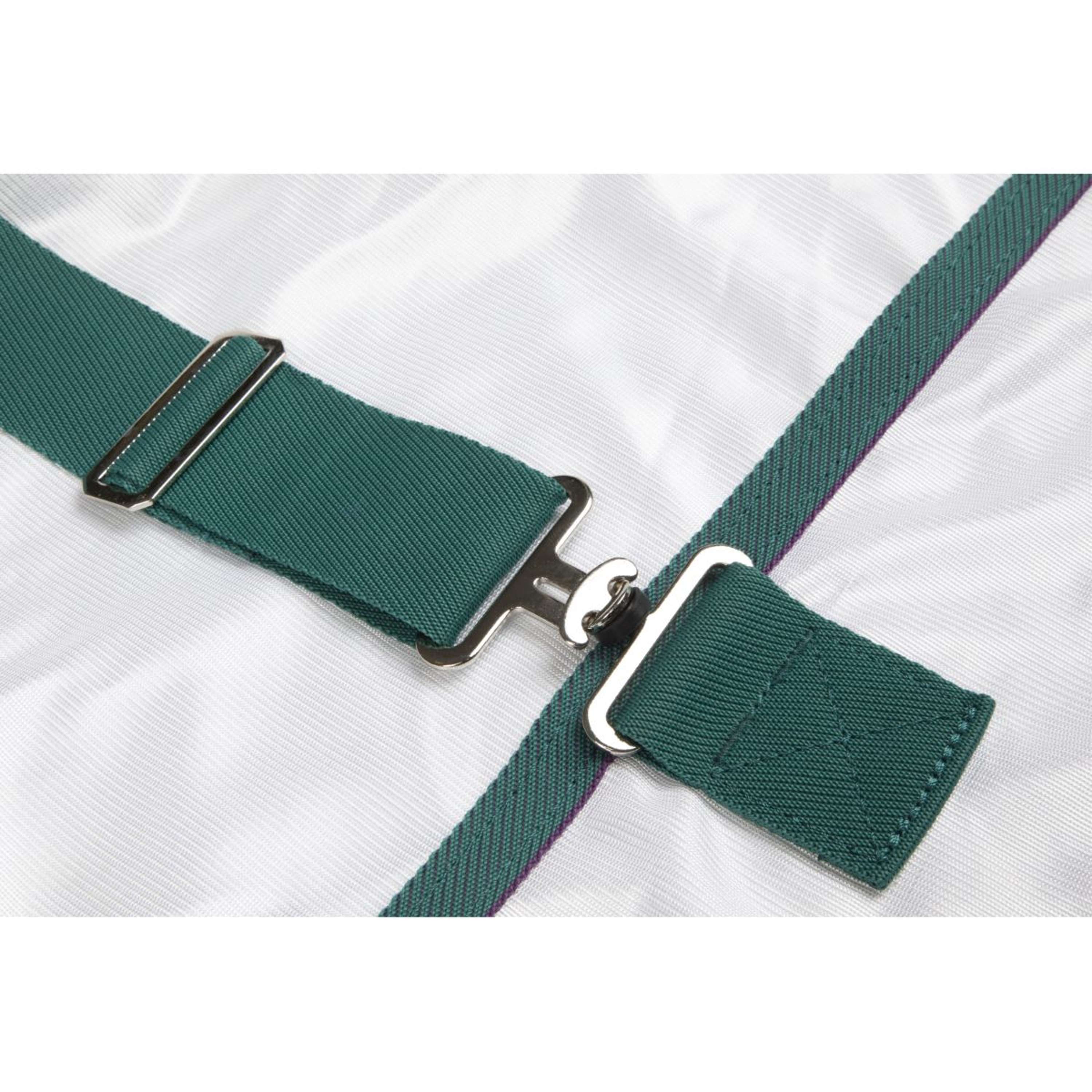 Il tappeto per mosche Highlander Plus offre una protezione completa contro gli insetti pungenti con una sensazione leggera e ariosa. La coperta è realizzata in un materiale densamente tessuto e traspirante e ha una copertura allungata sul collo che si adatta sopra il palo, permettendo al cavallo di pascolare liberamente. La patta addominale regolabile e la grande leetta piegata della coda assicurano che il cavallo rimanga completamente coperto.