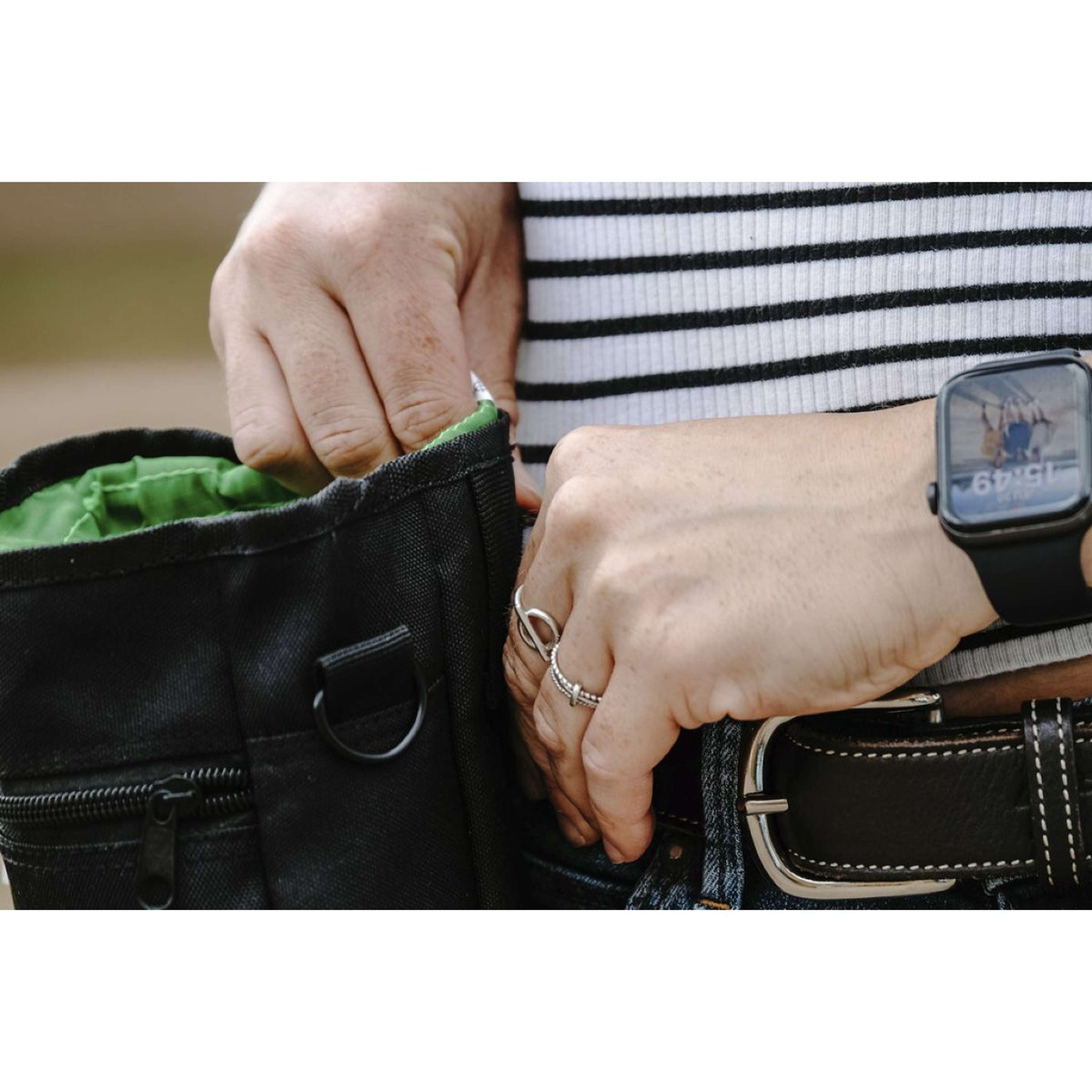 La borsa è comoda, leggera e facile da trasportare. Ideale per essere portata con te ovunque: dal maneggio alla passeggiata. Non occupa troppo spazio e ti permette di avere gli snack sempre a portata di mano.