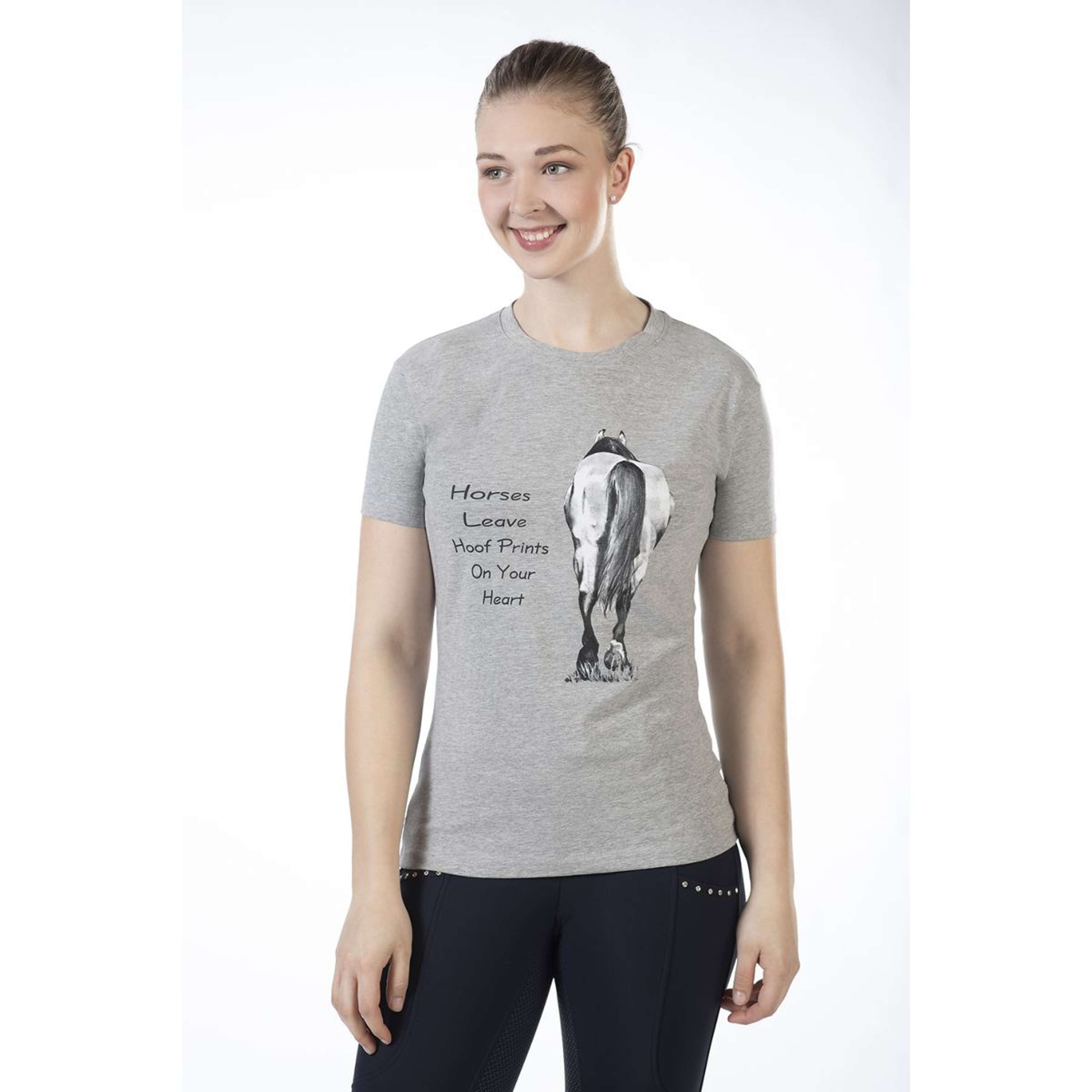 HKM Maglietta Horses leave Hoofprints Maniche Corte Grigio