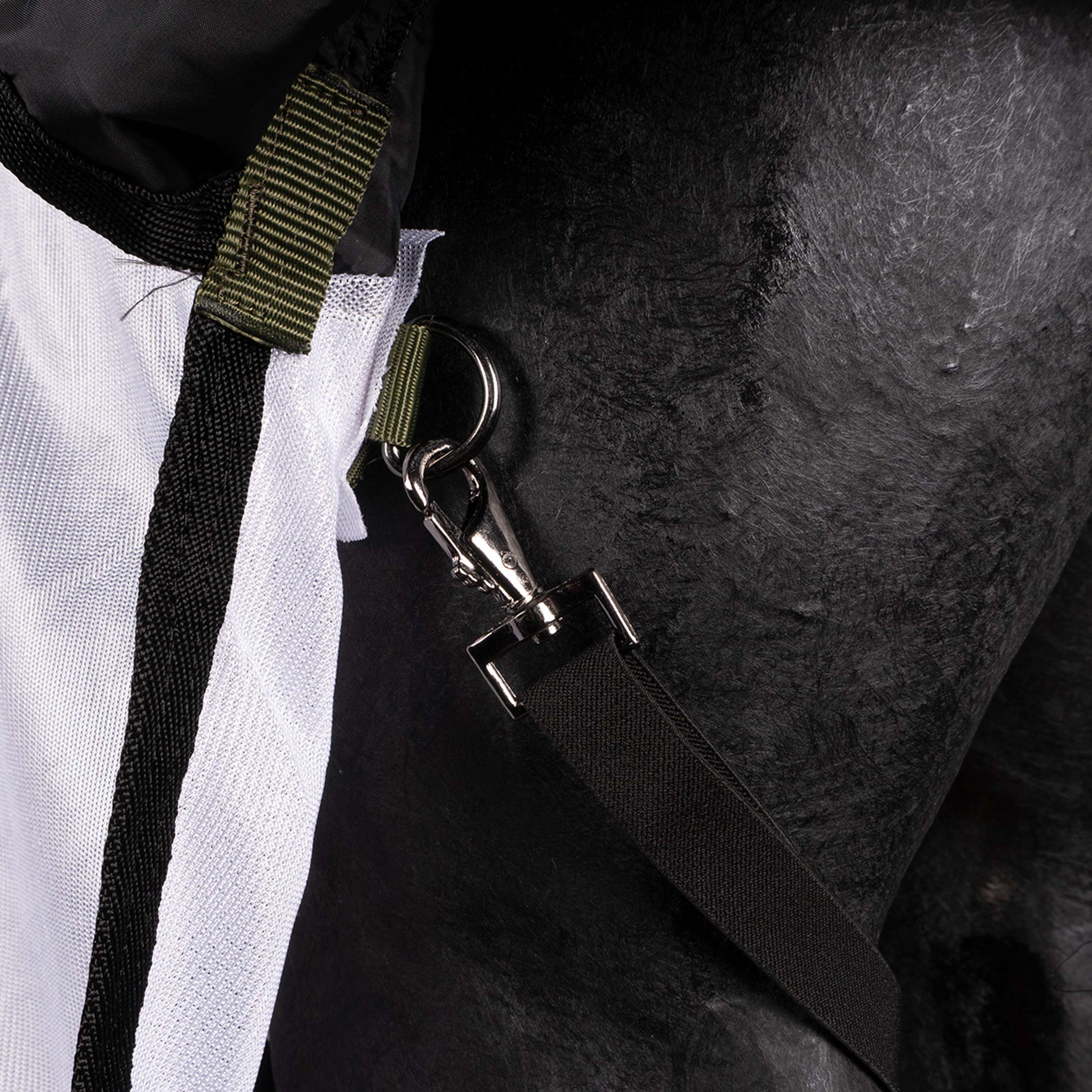 Non dubitare mai più di quale coperta il tuo cavallo dovrebbe indossare in primavera ed estate! Questa coperta 2-in-1 offre non solo un grande comfort di indossazione, ma anche protezione in varie condizioni meteorologiche. Durante un acquazone estivo, il tuo cavallo rimane asciutto grazie allo strato superiore resistente all'acqua (con la famosa stampa floreale Imperial Riding!). Inoltre, il materiale a rete leggero e traspirante lo rende un tappeto perfetto per la mosca. La coperta ha una doppia lembo addominale ed è dotata di 3 circonferenze intorno alla pancia, 2 cinghie elastiche per le zampe posteriori, una patta della coda ergonomica e pieghe delle gambe per la massima libertà di movimento. Con il sistema di fibbia e il Velcro sul petto, questa coperta resta perfettamente al suo posto. In breve, questa coperta resistente all'acqua e agli insetti è davvero indispensabile per il tuo cavallo! Si prega di notare: la parte del manico viene venduta separatamente.