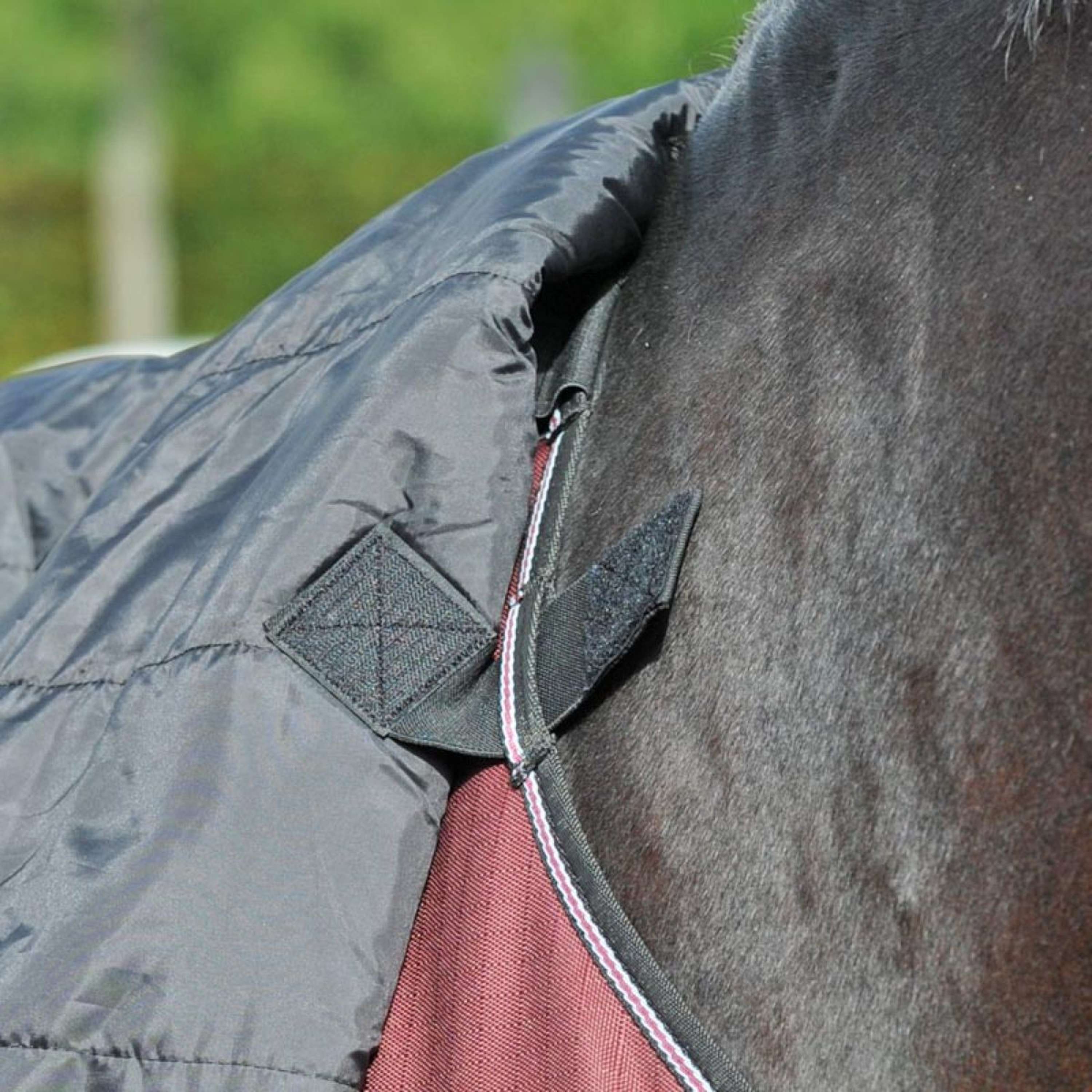La struttura di questo copricollo è studiata per offrire comfort senza compromettere la libertà di movimento del cavallo. È comodo da indossare e facile da rimuovere. Si adatta perfettamente al tuo cavallo, senza fastidi.