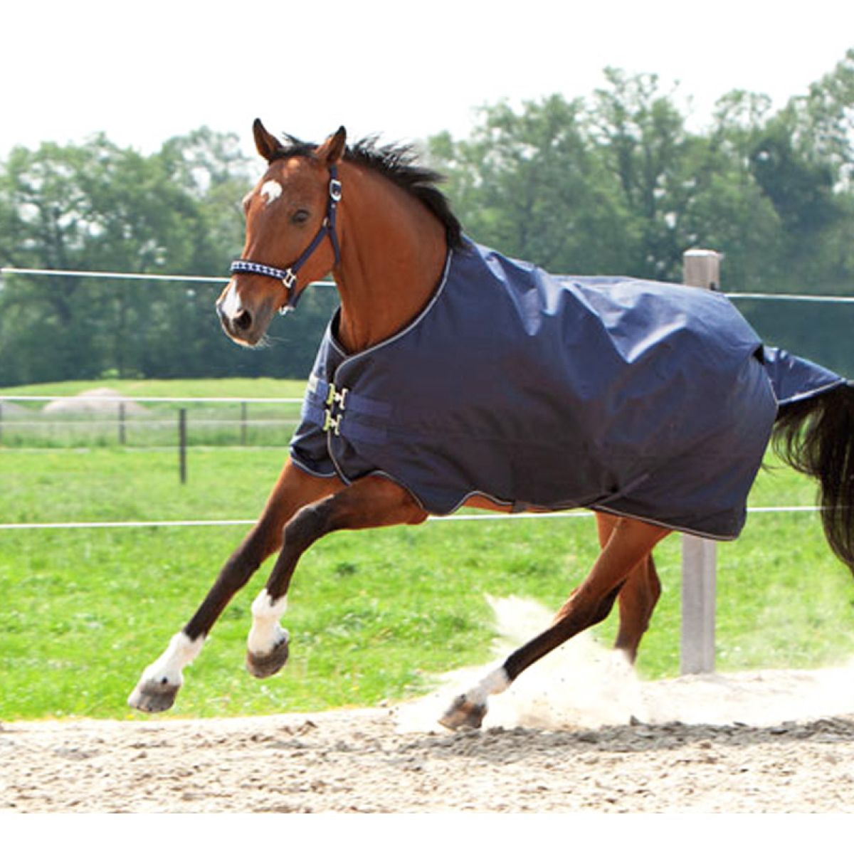 La fodera interna da 200g è perfetta per mantenere un equilibrio ottimale tra calore e leggerezza. Non pesante né ingombrante, il tappeto si adatta comodamente al corpo del cavallo.