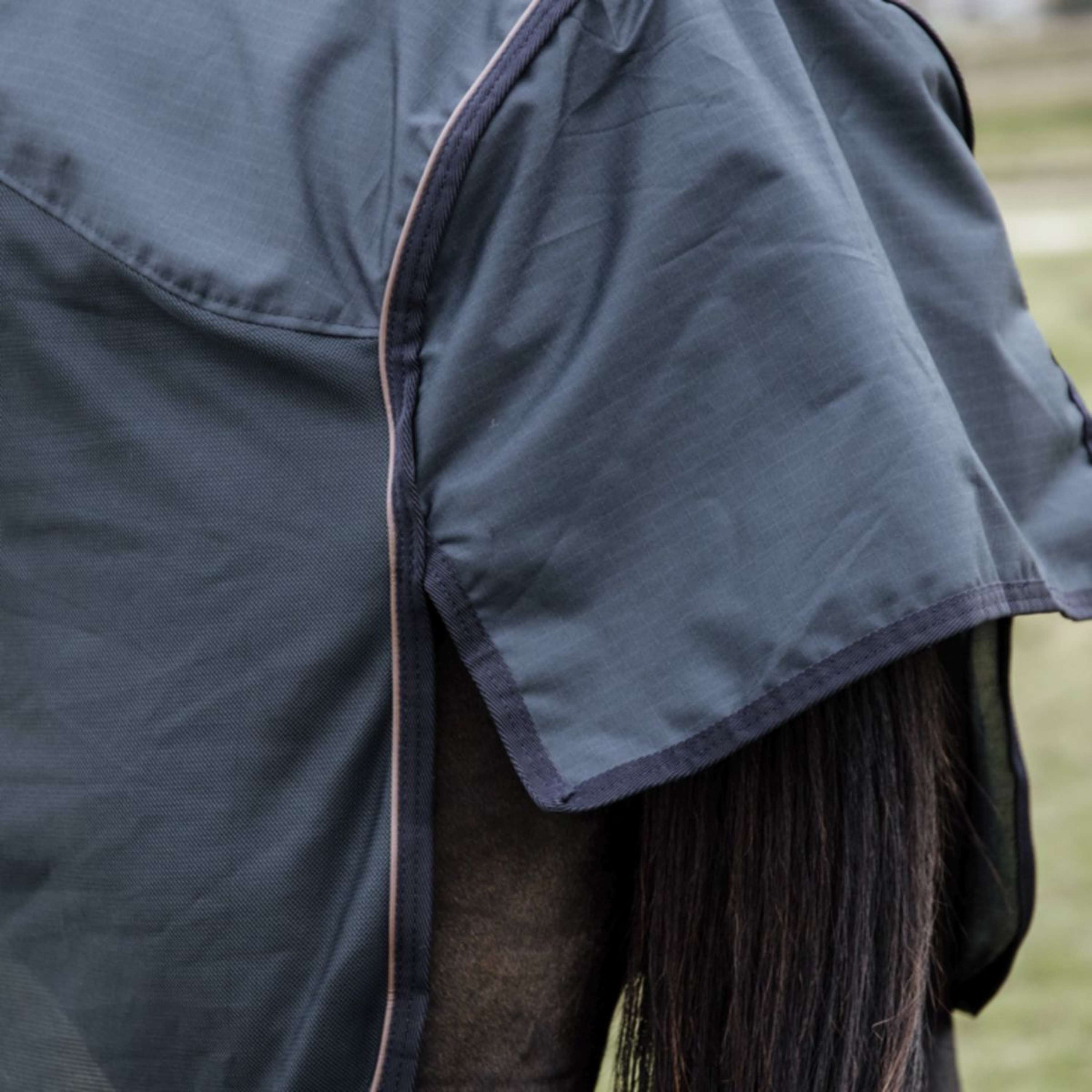 Con il suo design combo, questa coperta copre spalle, corpo e collo, assicurando che ogni area sia protetta. Perfetta per quei giorni in cui gli insetti sembrano non voler lasciare in pace il tuo cavallo.
