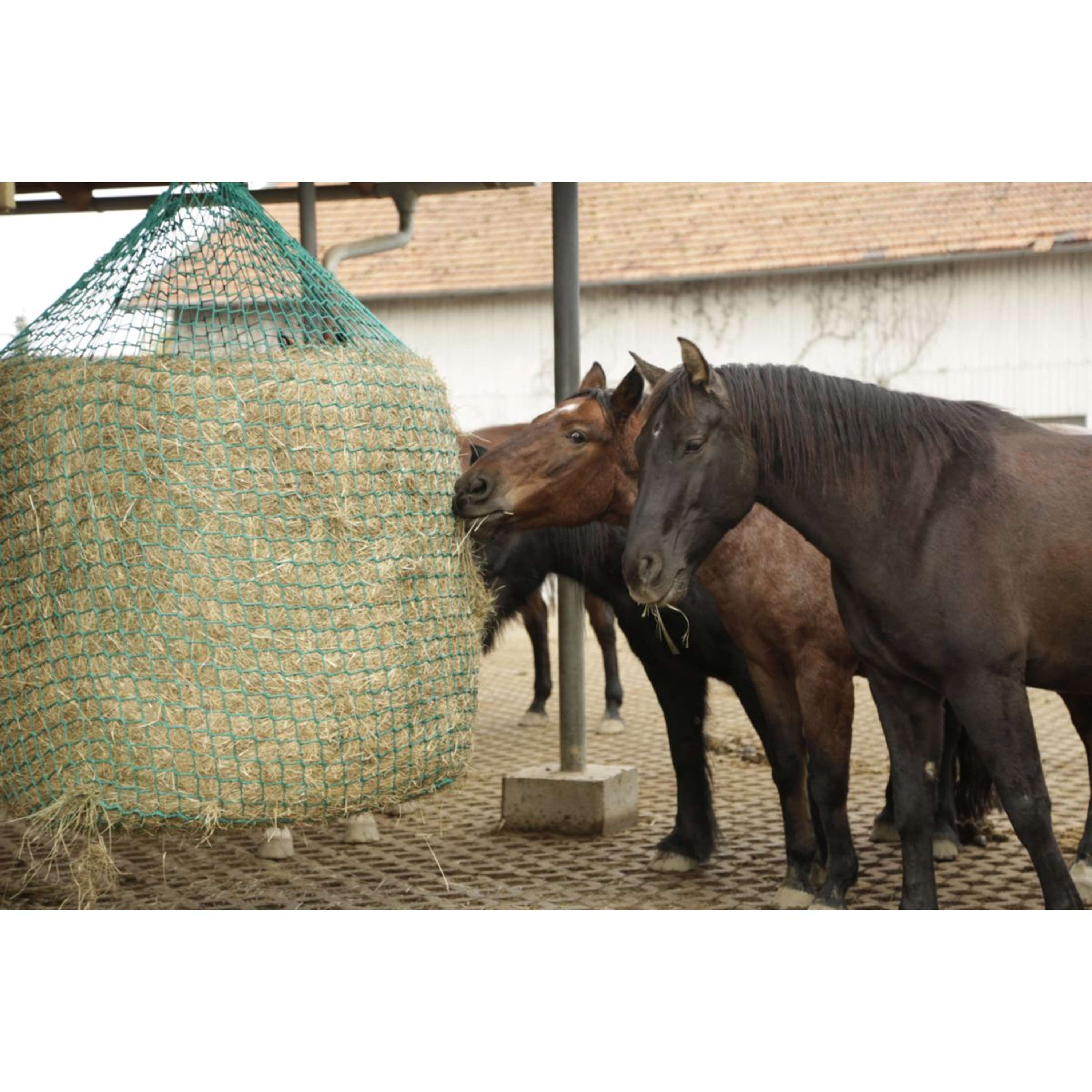 Ridurre le perdite di mangime: la rete per fieno Kerbl riduce la perdita di mangime nei pascoli, nelle stalle aperte o nei paddock e garantisce un'alimentazione pulita e controllata con balle rotonde per cavalli e bovini - ideale per un utilizzo efficiente del fieno.