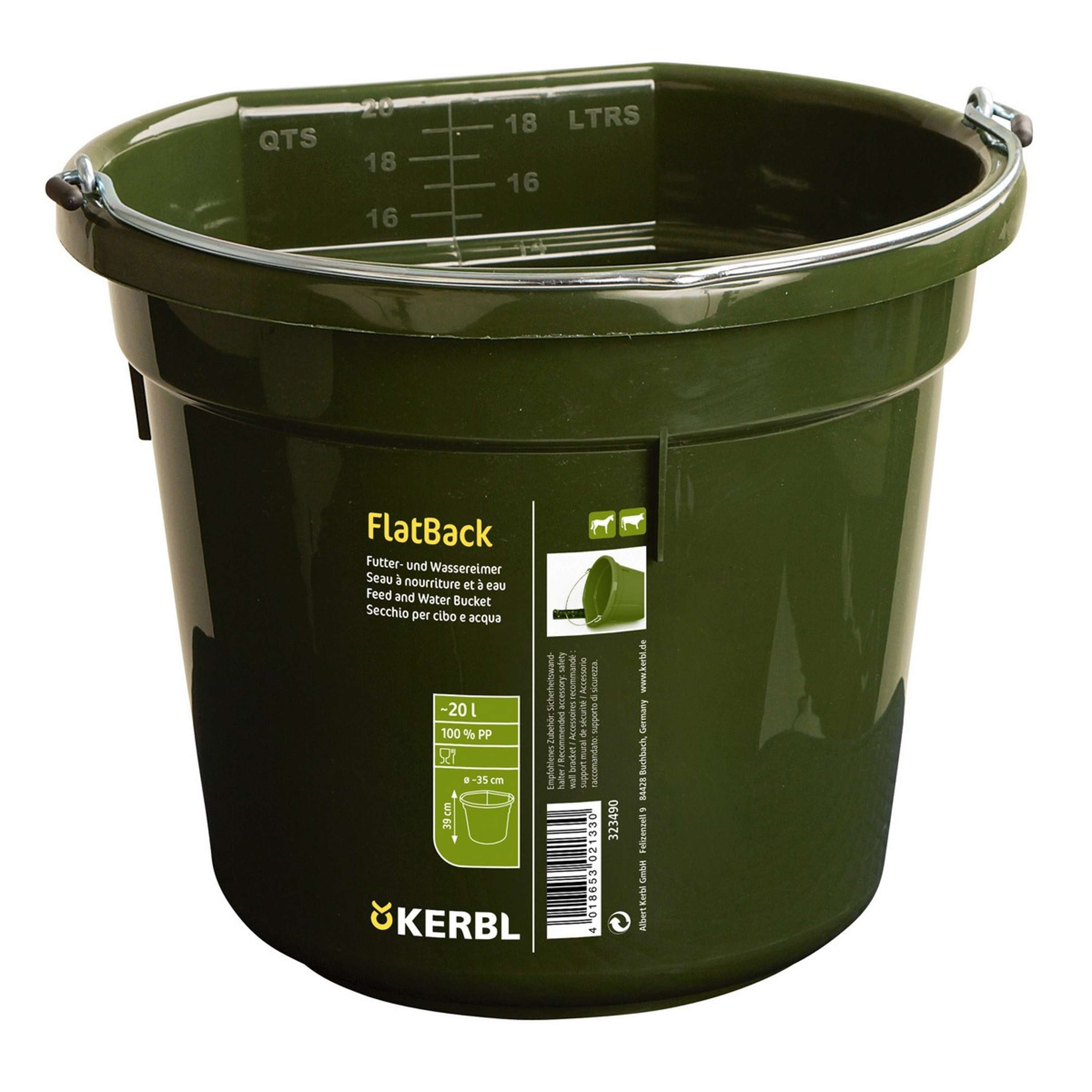 Kerbl Secchio per Mangime e Acqua Flat Back Verde