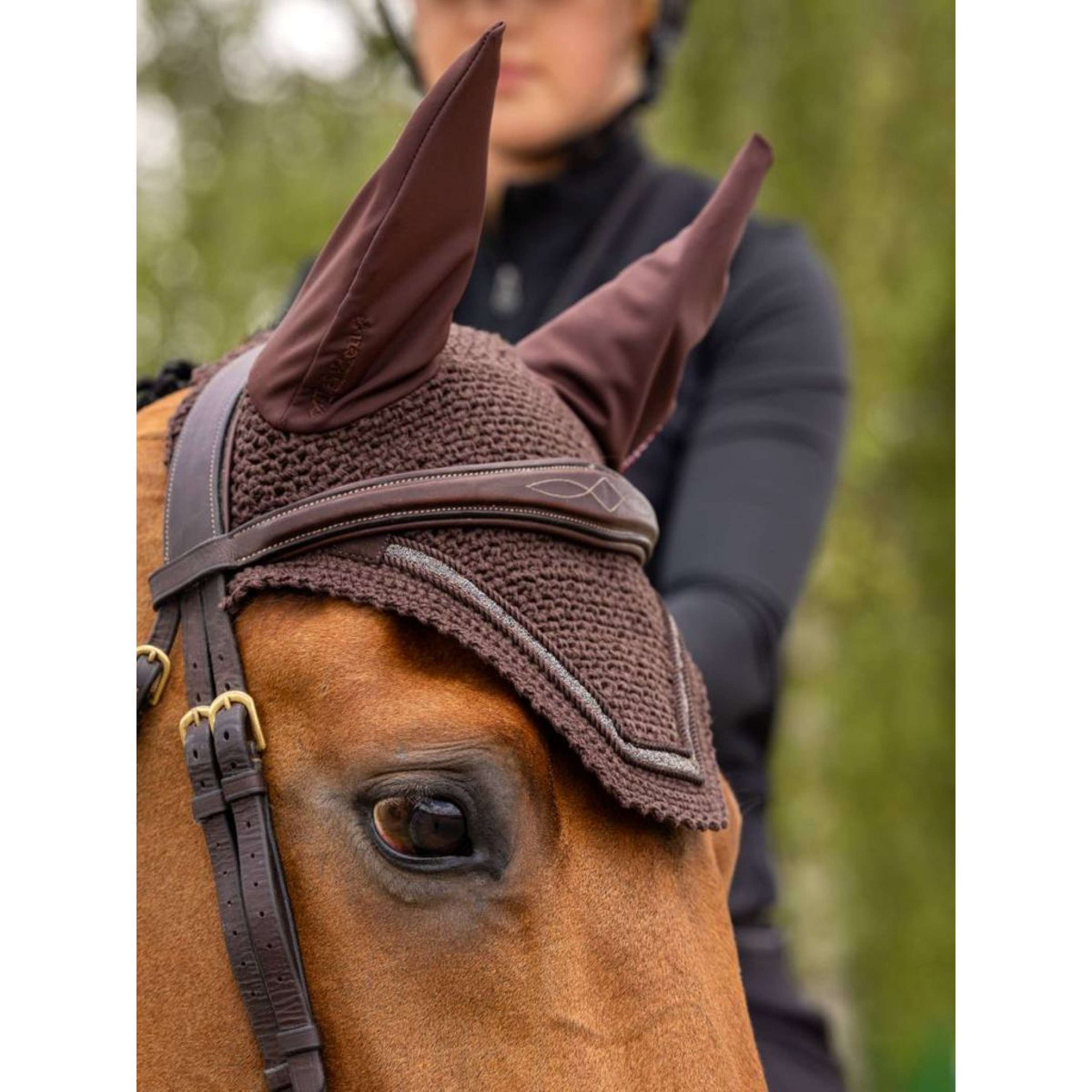 Oltre all’eleganza, questa cuffietta dona sollievo al cavallo grazie alla sua capacità di attenuare rumori e fastidi. Protegge le orecchie da mosche e polvere senza sacrificare il comfort.