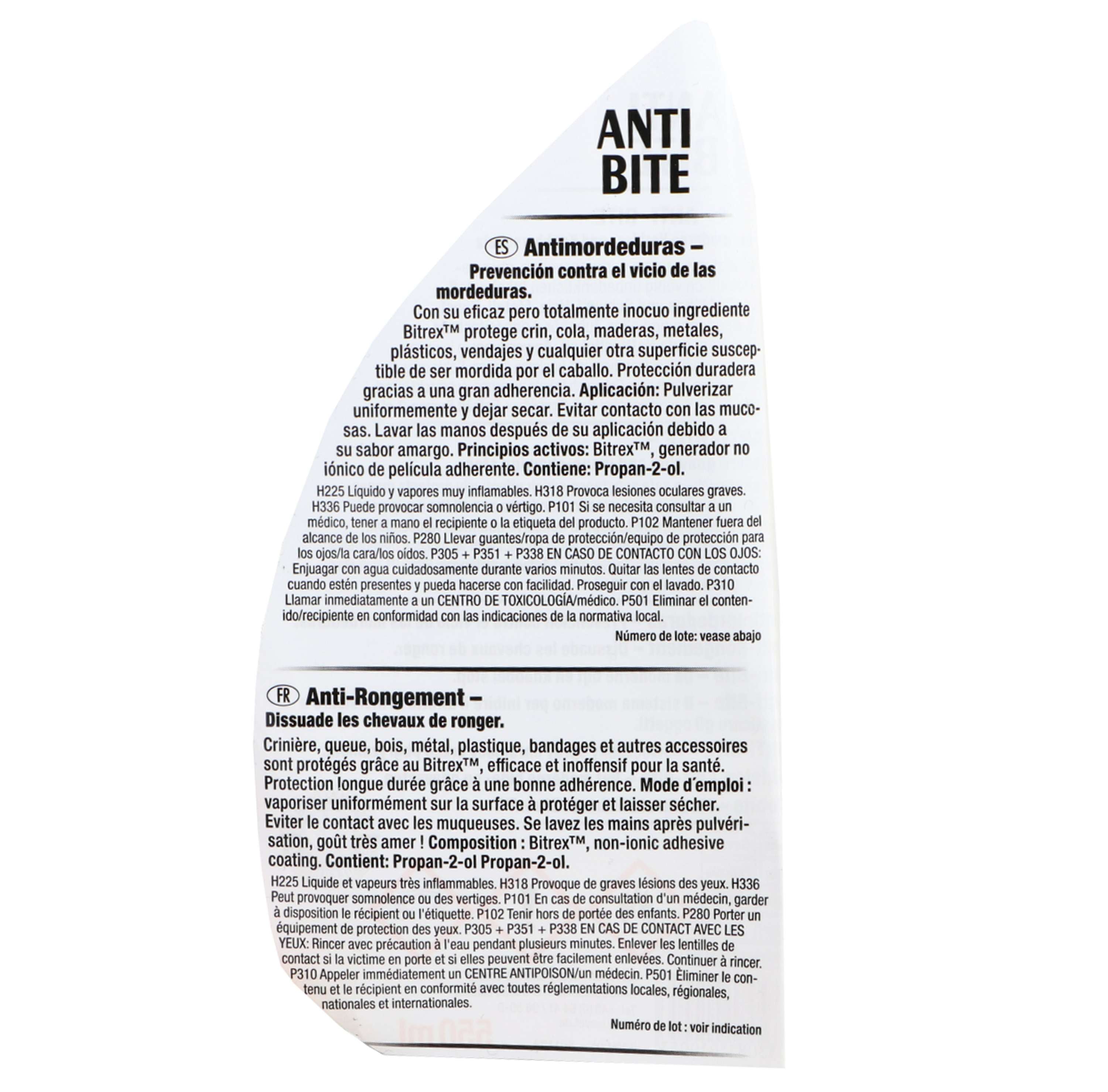 Con la sua formula studiata appositamente, questo spray è progettato per scoraggiare il cavallo dal mordere e danneggiare superfici. È sicuro da utilizzare e non crea fastidi agli animali.