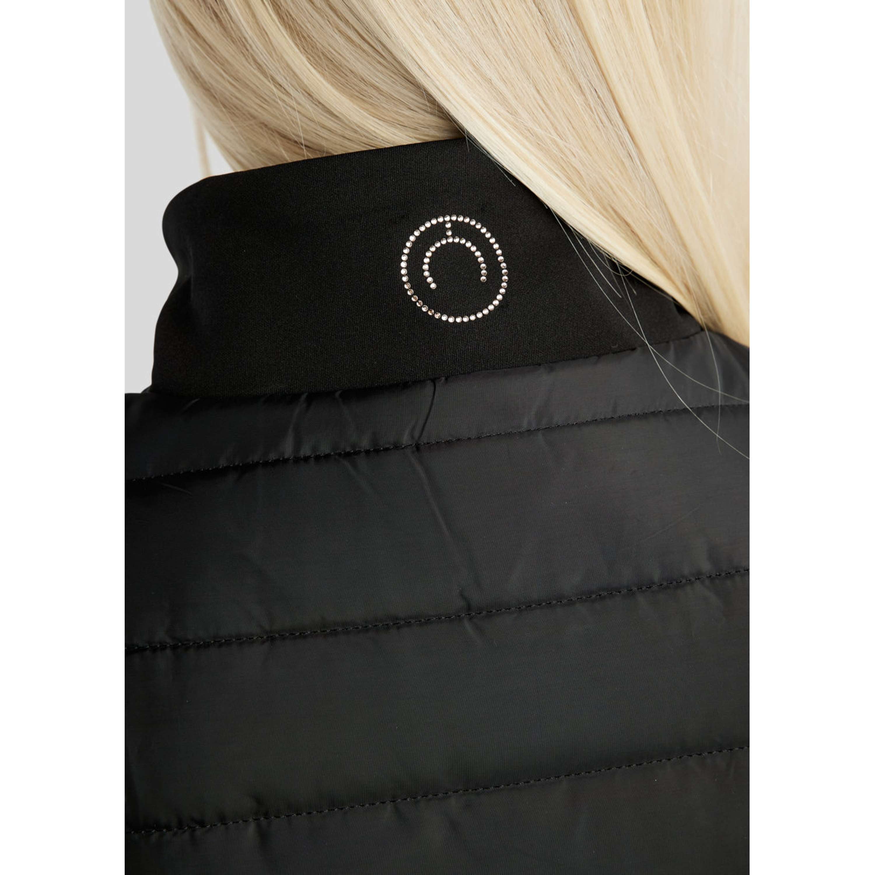 La giacca presenta un bellissimo davanti e retro trapuntato combinato con maniche softshell morbide e pannelli laterali. Sul petto, Montar è scritto in piccoli ed eleganti cristalli color champagne, conferendo alla giacca un'espressione esclusiva e femminile. Nel collo, un logo di cristallo abbinato adorna il colletto, completando il look stiloso.