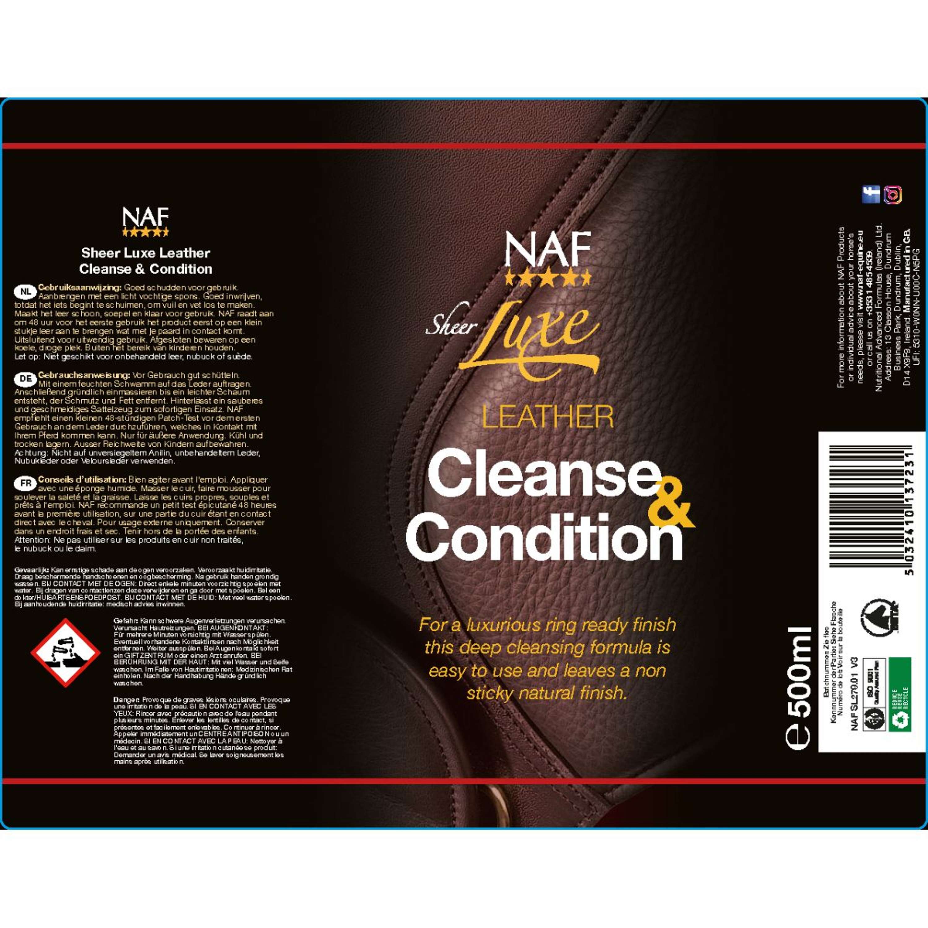 Un prodotto che sa il fatto suo quando si tratta di cura del cuoio! Con il NAF Deterge e condiziona la pelle pura e lussuosa, mantenere i tuoi articoli in pelle belli e funzionali diventa un gioco da ragazzi. Una soluzione semplice e efficace per pulire e nutrire la pelle, lasciandola morbida e luminosa.