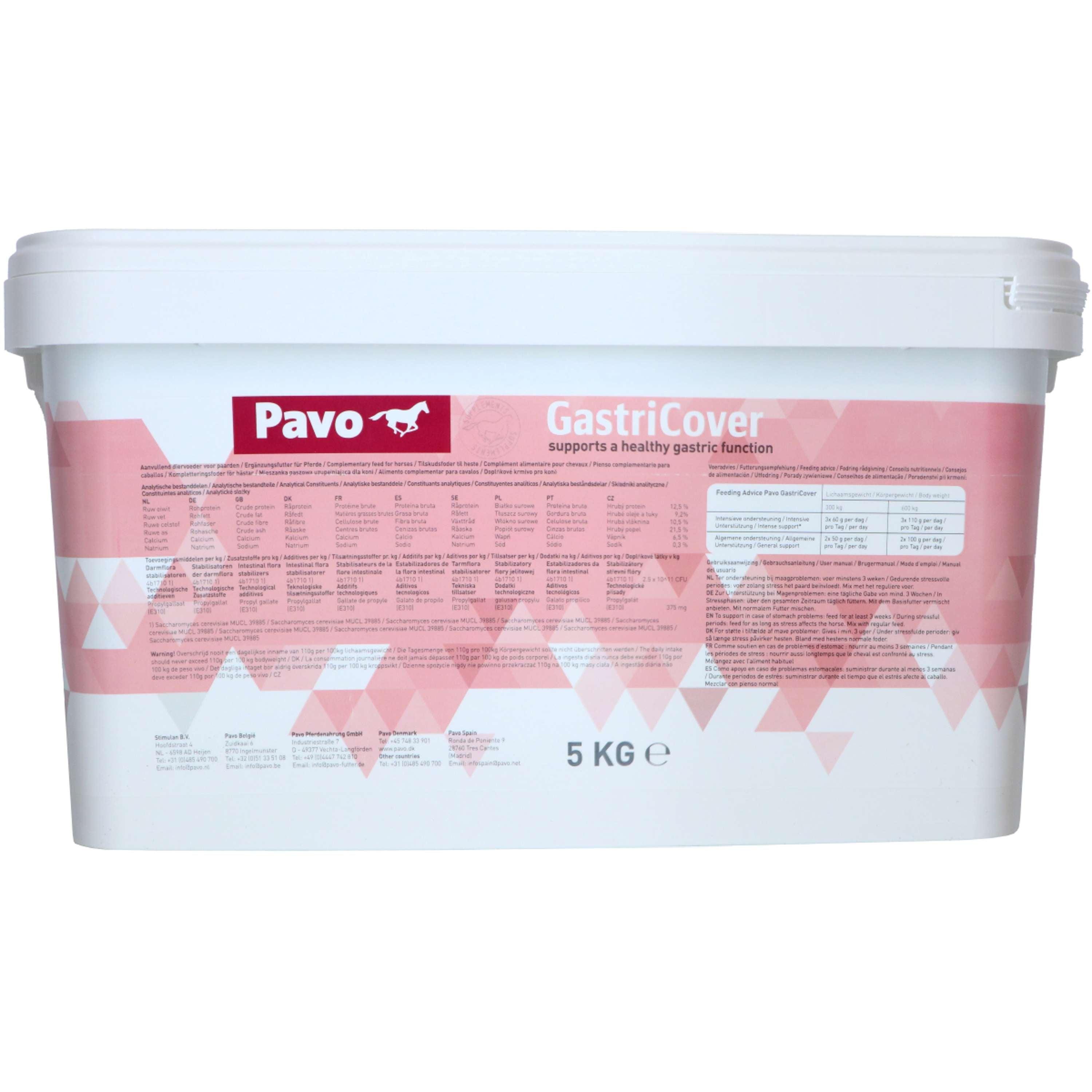 Un cavallo ha naturalmente un apparato digerente molto complesso e uno stomaco molto sensibile. A volte ha bisogno di un piccolo supporto extra. L'integratore Pavo GastriCover è stato specificamente sviluppato per promuovere la sana funzionalità dello stomaco. Può supportare il rinnovamento della mucosa gastrica (rivestimento dello stomaco) e aiuta a neutralizzare l'acidità di stomaco.