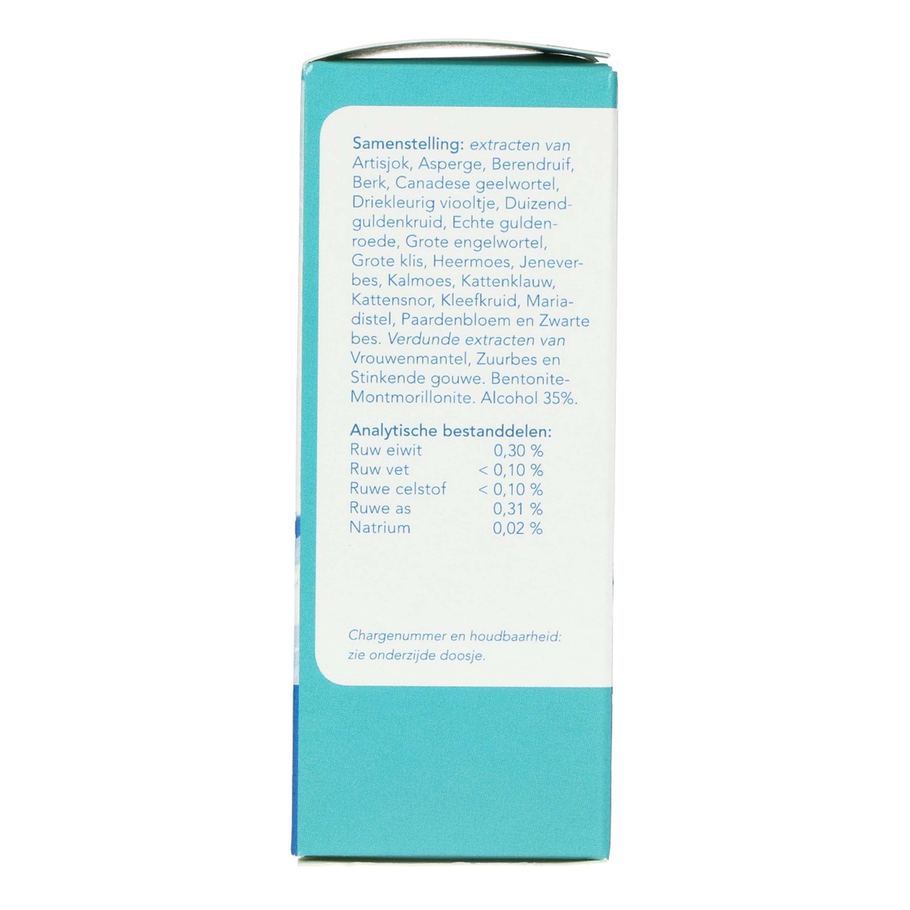 Somministrare il prodotto direttamente in bocca utilizzando una siringa di plastica, diluito con un po' d'acqua se necessario. Preferibilmente non contemporaneamente ai pasti, poiché il prodotto agisce meglio se viene assorbito dalla mucosa orale pulita. Se l'animale non gradisce il prodotto, le gocce possono essere somministrate su un piccolo bocconcino. Estratti di Carciofo, Asparago, Uva ursina, Betulla, Idraste, Viola selvatica, Centaurea, Verga d'oro, Angelica maggiore, Bardana maggiore, Equiseto, Ginepro, Oleandro, Uncaria, Baffo di gatto, Erba gatta, Cardo mariano, Tarassaco e Ribes nero. Estratti diluiti di Alchemilla, Celidonia maggiore e Crespino. Bentonite-Montmorillonite. Alcol 30% Proteine grezze 0,30% Grassi grezzi <0,10% Fibra grezza <0,10% Ceneri grezze 0,31% Sodio 0,02%