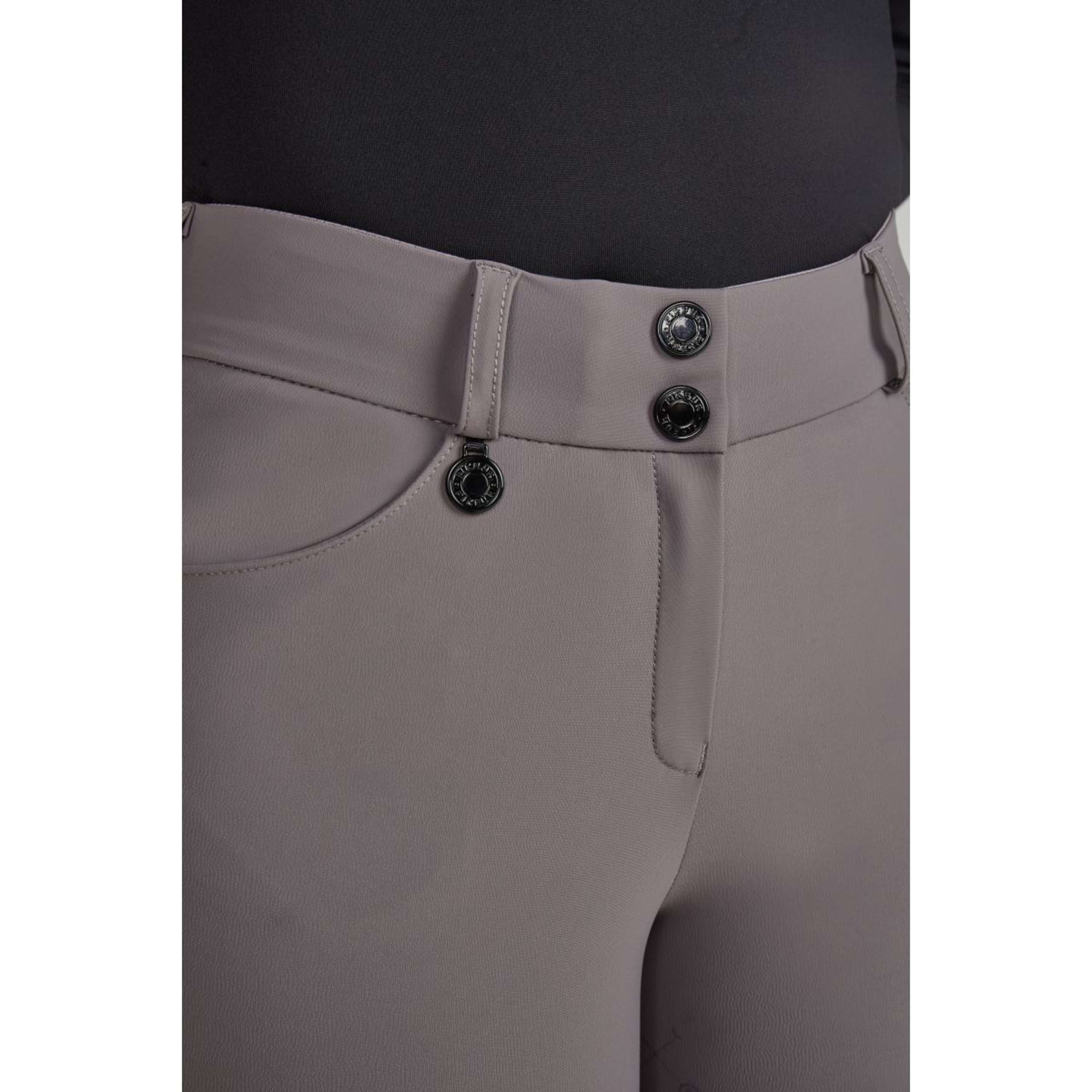 • Passante destro per cintura con etichetta con logo Pikeur e rivetto Pikeur sulla coscia