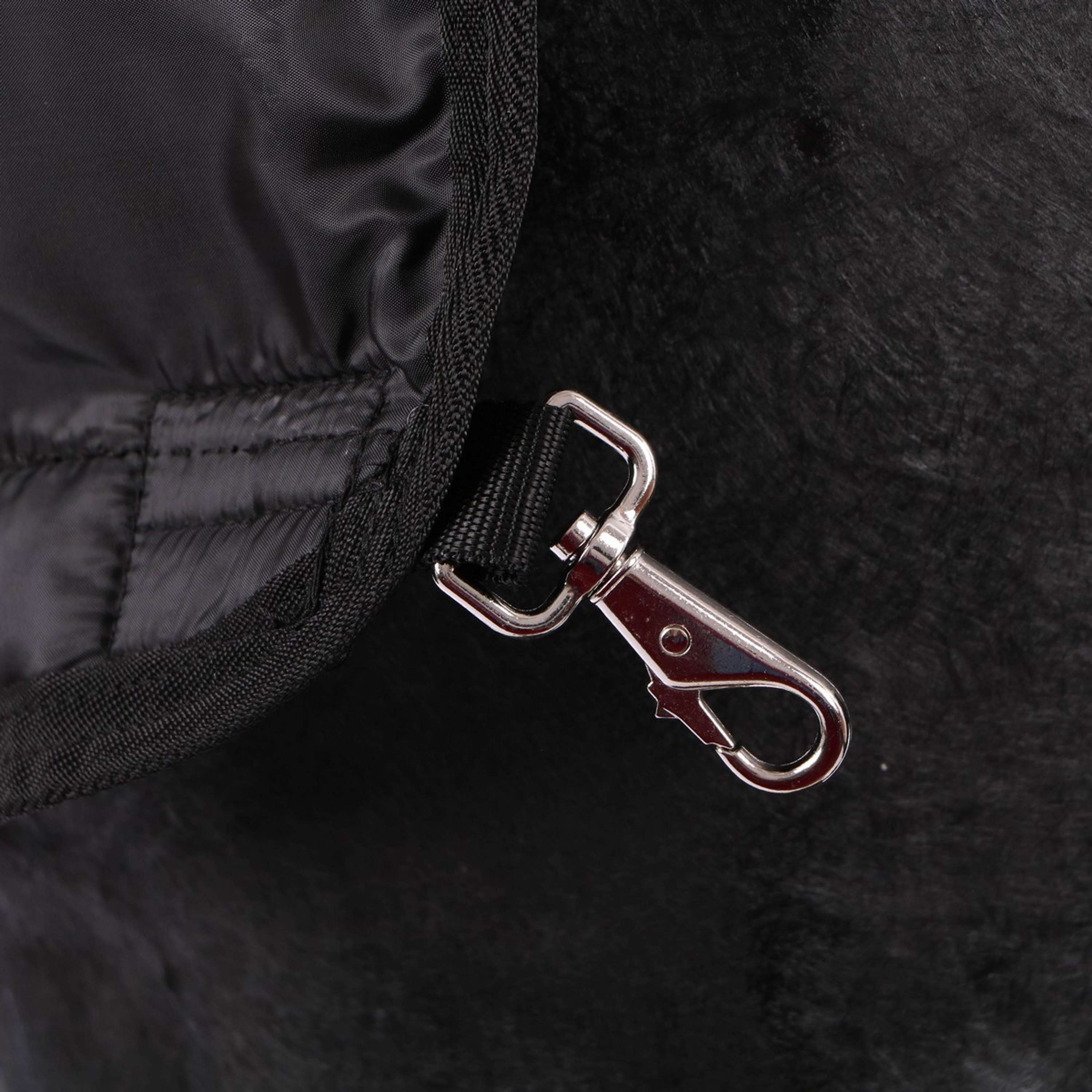 - La fodera si attacca tramite anelli in velcro alla zona del collo del tappeto esterno e si aggancia agli angoli posteriori per evitare che la fodera scivoli.