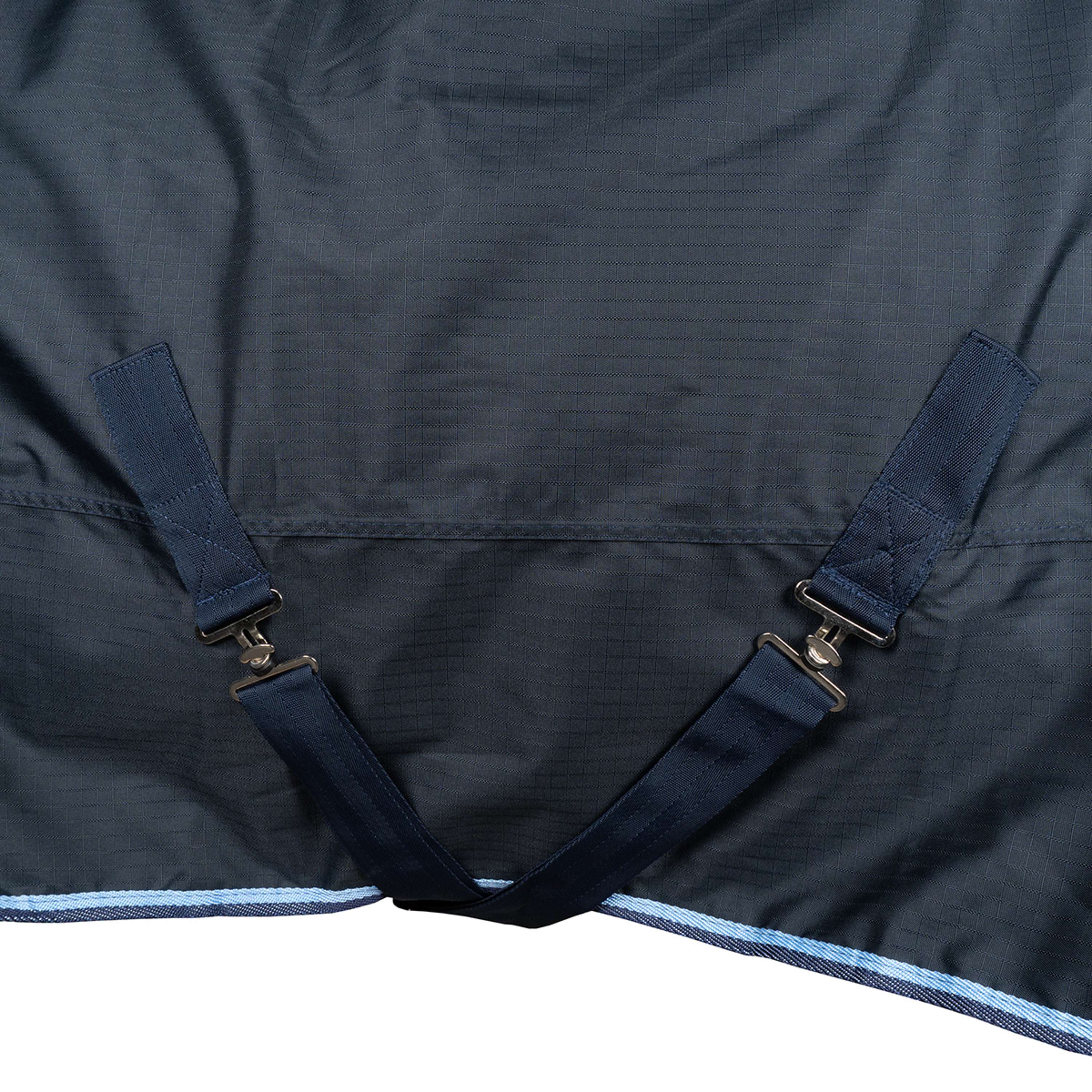 Il suo tessuto impermeabile tiene lontano l'umidità, garantendo che il manto del tuo cavallo rimanga asciutto anche durante piogge improvvise. Un vero must per i cavalli che vivono all’aperto.
