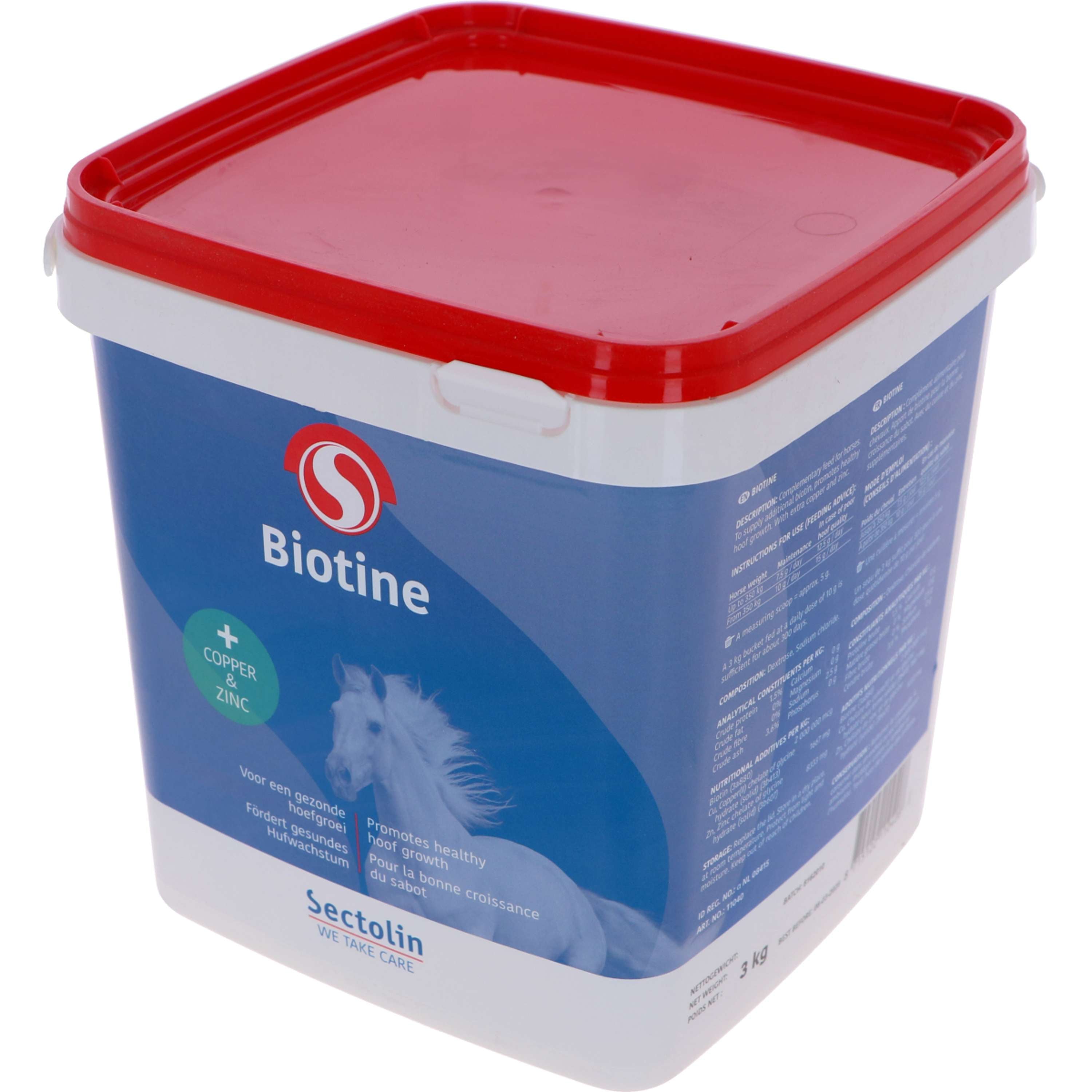 La biotina è importante per la crescita e il recupero della pelle e degli zoccoli del cavallo. È una vitamina importante, essenziale per la crescita cellulare. La biotina è presente in quasi tutte le cellule del corpo ed è importante per il metabolismo completo, la stabilità del sistema nervoso centrale e il mantenimento di livelli stabili di zucchero nel sangue.