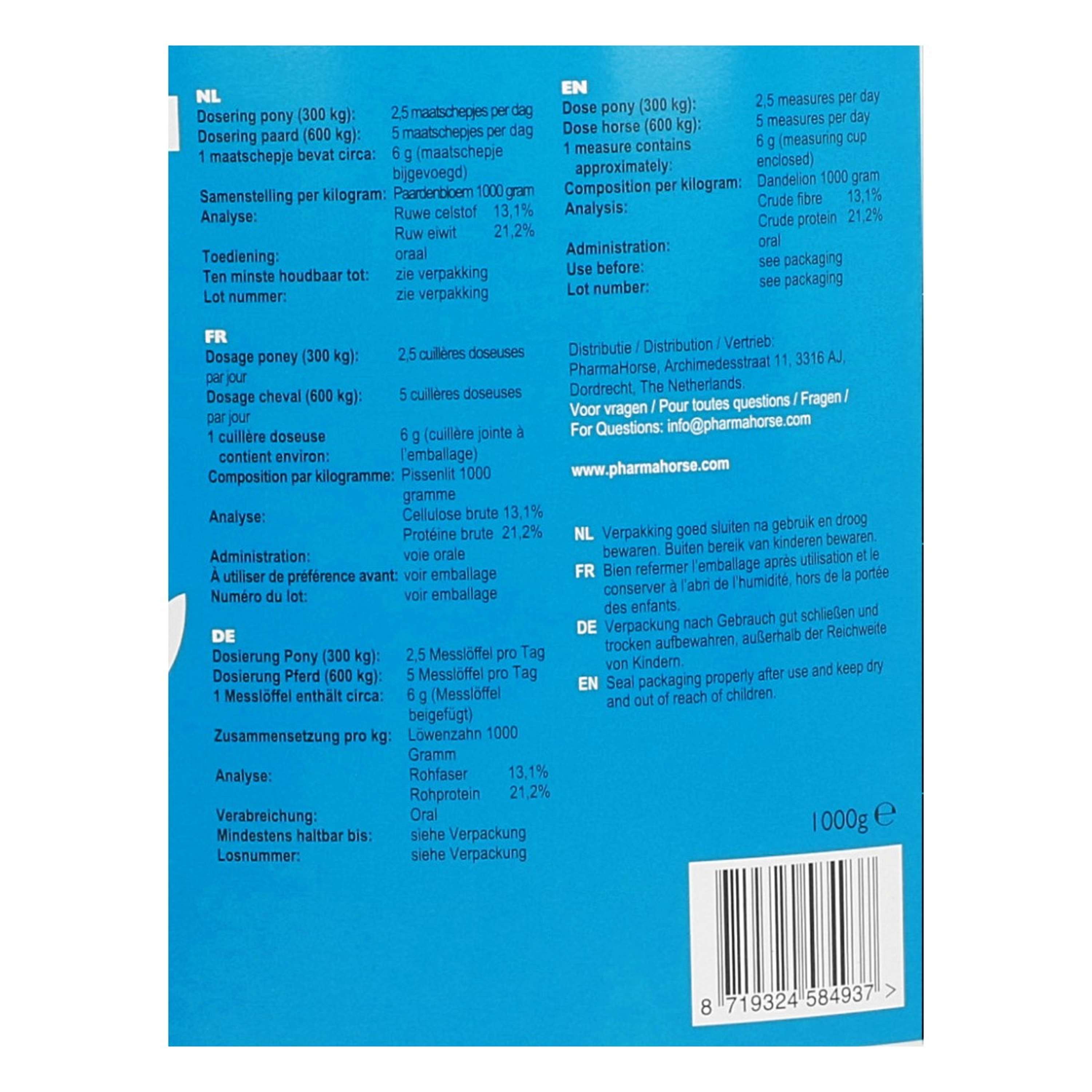 Hai mai sentito parlare del potere del tarassaco? Questo prodotto naturale è un vero regalo della natura per il benessere del tuo cavallo. Perfetto per chi cerca una soluzione semplice e pratica per sostenere la salute del tratto digestivo e il corretto equilibrio interno. Insomma, una scelta vincente per prendersi cura del proprio amico a quattro zampe.