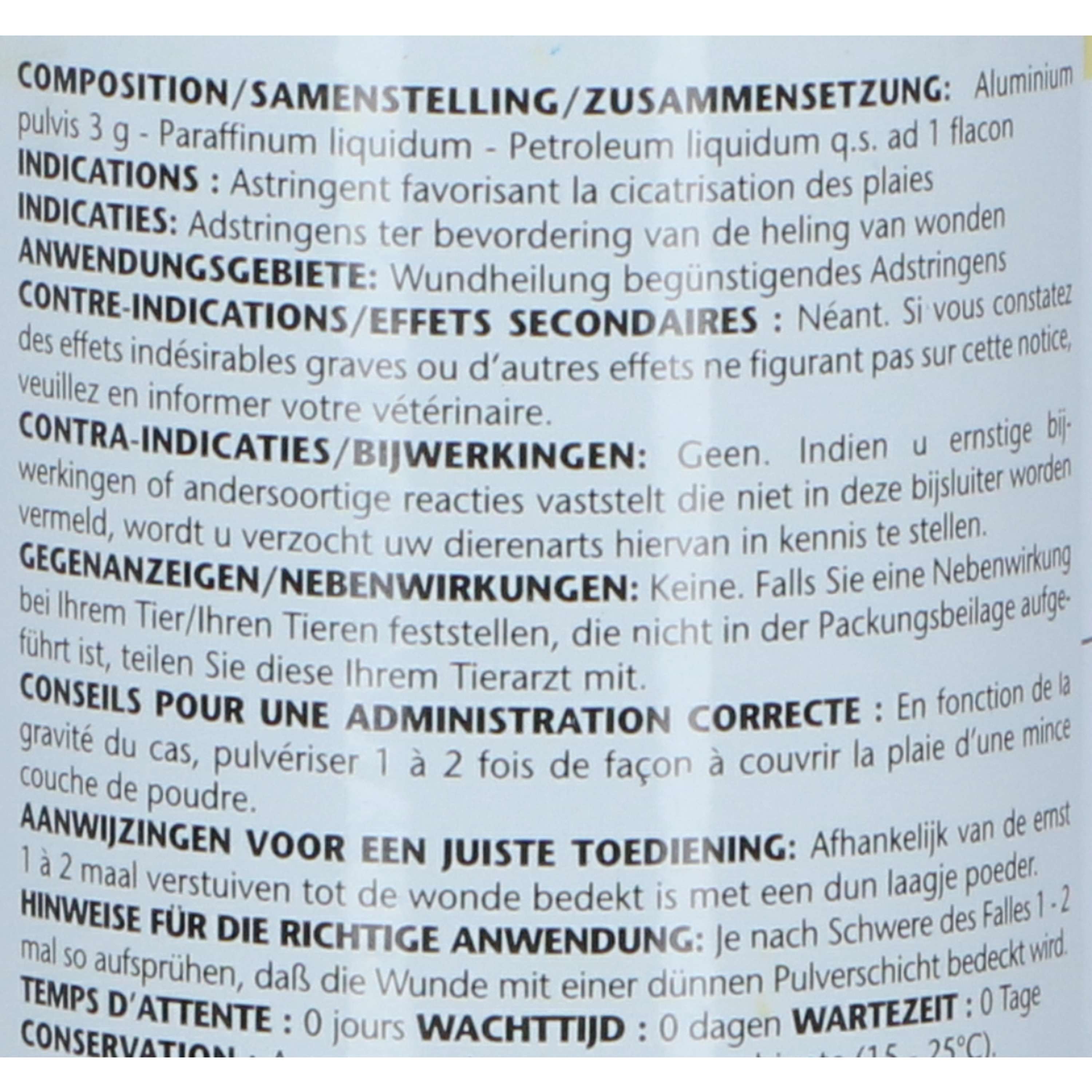 Qualsiasi sia la situazione, che si tratti di un graffio o di una piccola lesione, questo spray offre la soluzione giusta. Ideale per cavalli, cani e gatti, copre un’ampia gamma di necessità.