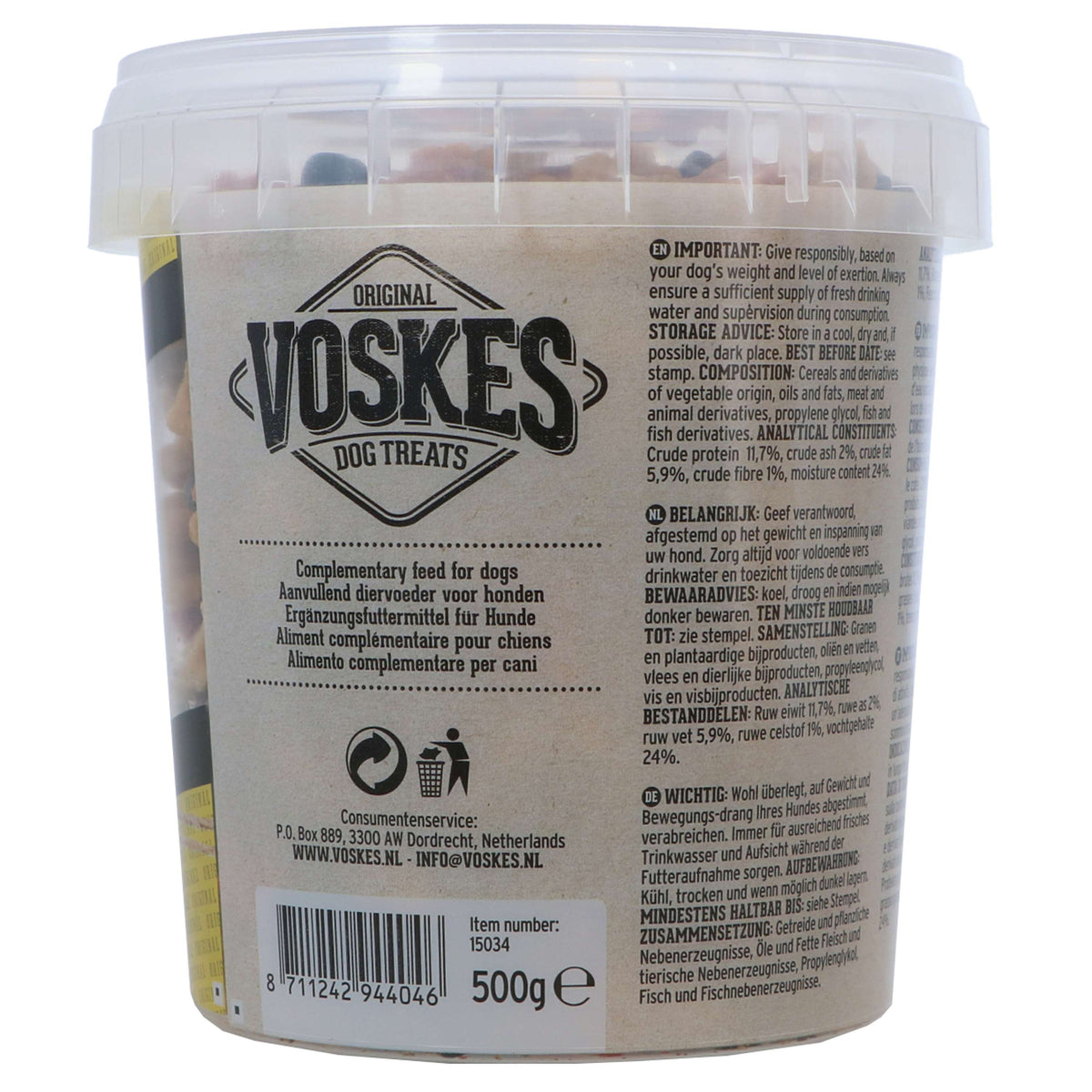 Grazie alla pratica confezione, Voskes Minimiscela si conserva facilmente e mantiene tutta la sua freschezza. Ideale per avere sempre uno spuntino pronto per il tuo cane!