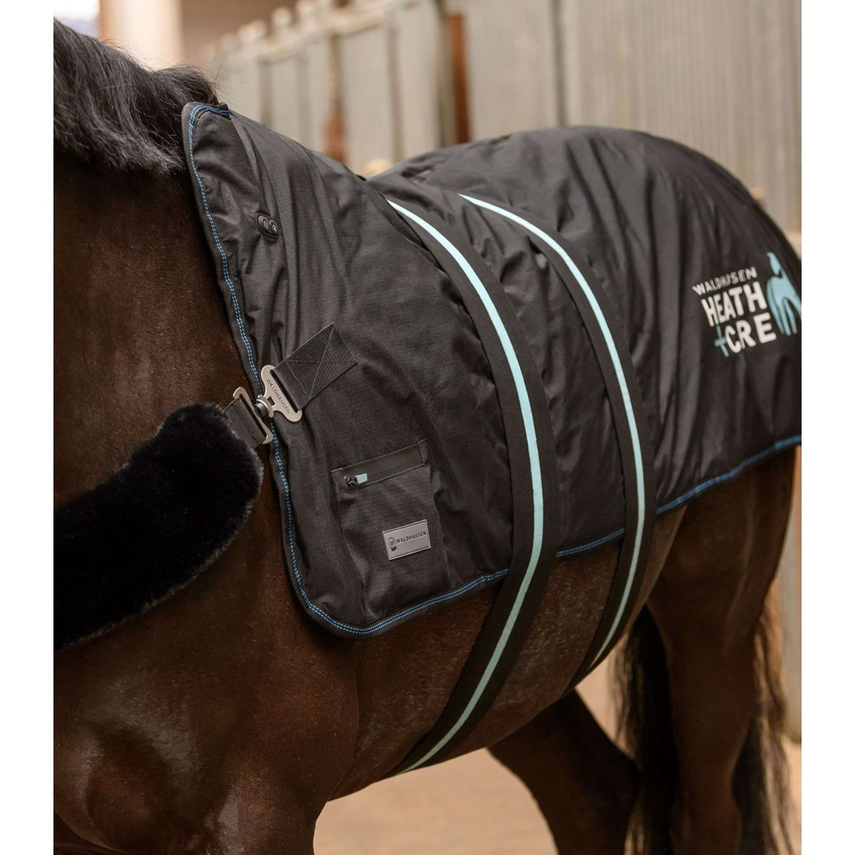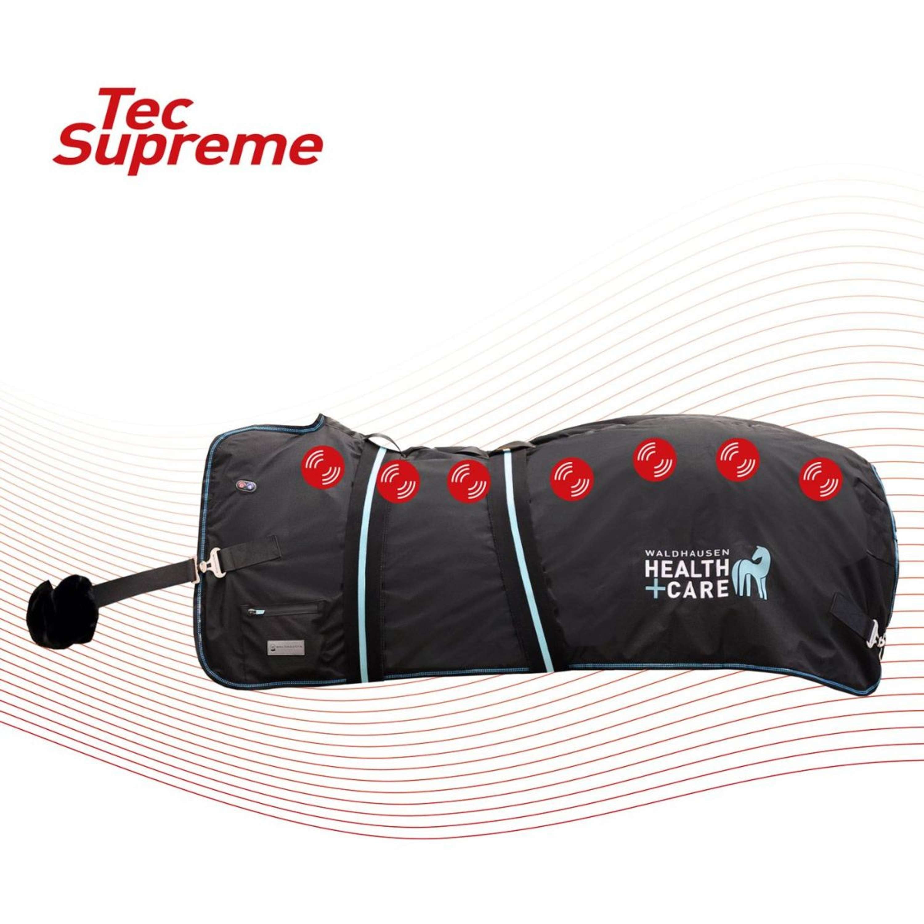 Benessere a portata di mano. La coperta riscaldante e massaggiante Waldhausen Health + Care TecSupreme rilassa in modo specifico i muscoli tesi, favorisce la circolazione sanguigna e supporta il recupero. Ogni lato della coperta ha un proprio sistema di riscaldamento e sette unità di massaggio integrate. Entrambi i lati possono essere controllati singolarmente e indipendentemente l’uno dall’altro, per un’applicazione veloce, efficace e semplice. Prima e dopo l’allenamento o semplicemente per regalare una coccola: il cavallo trae beneficio dal calore e dal massaggio proprio come se fosse in una spa.
